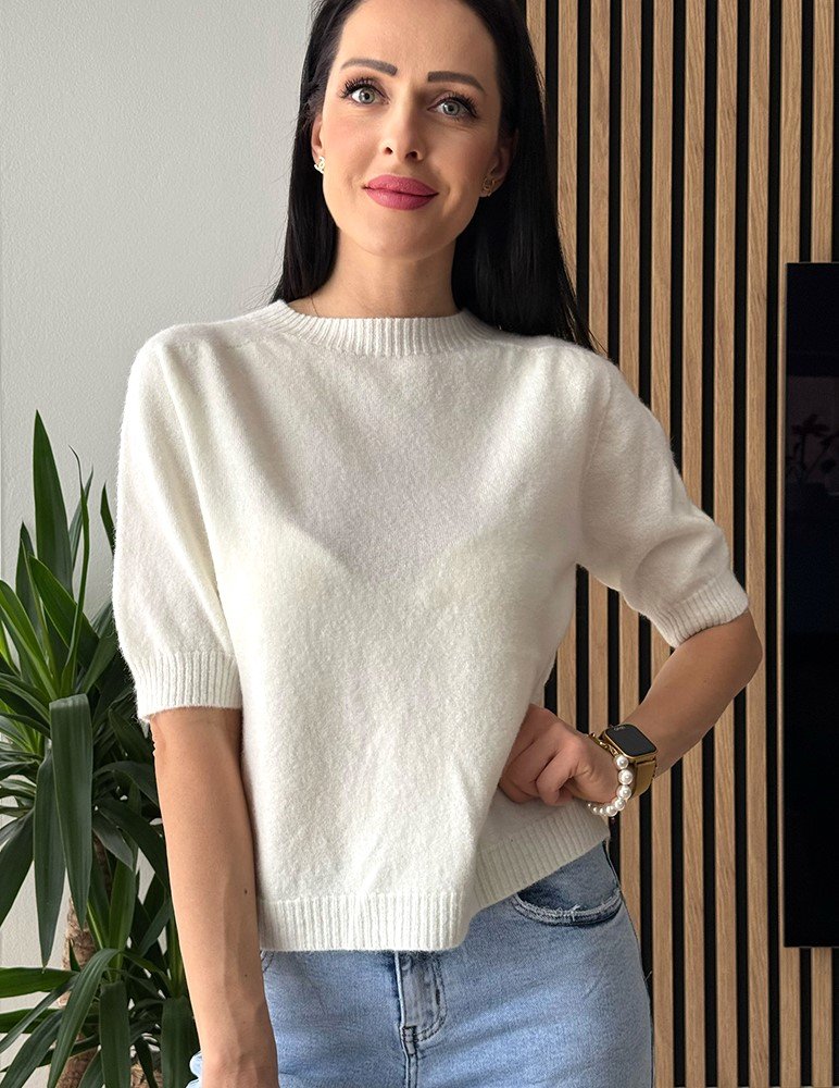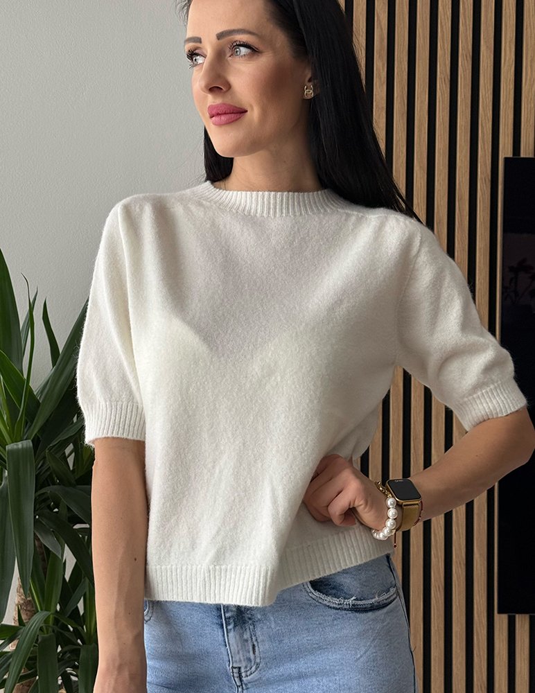 SkladomSmotanový pulóver Liona je elegantný jemne pletený top s krátkym rukávom s ozdobným patentovým zakončením. Pulóver sa hodí k elegantným aj ležérnym outfitom.