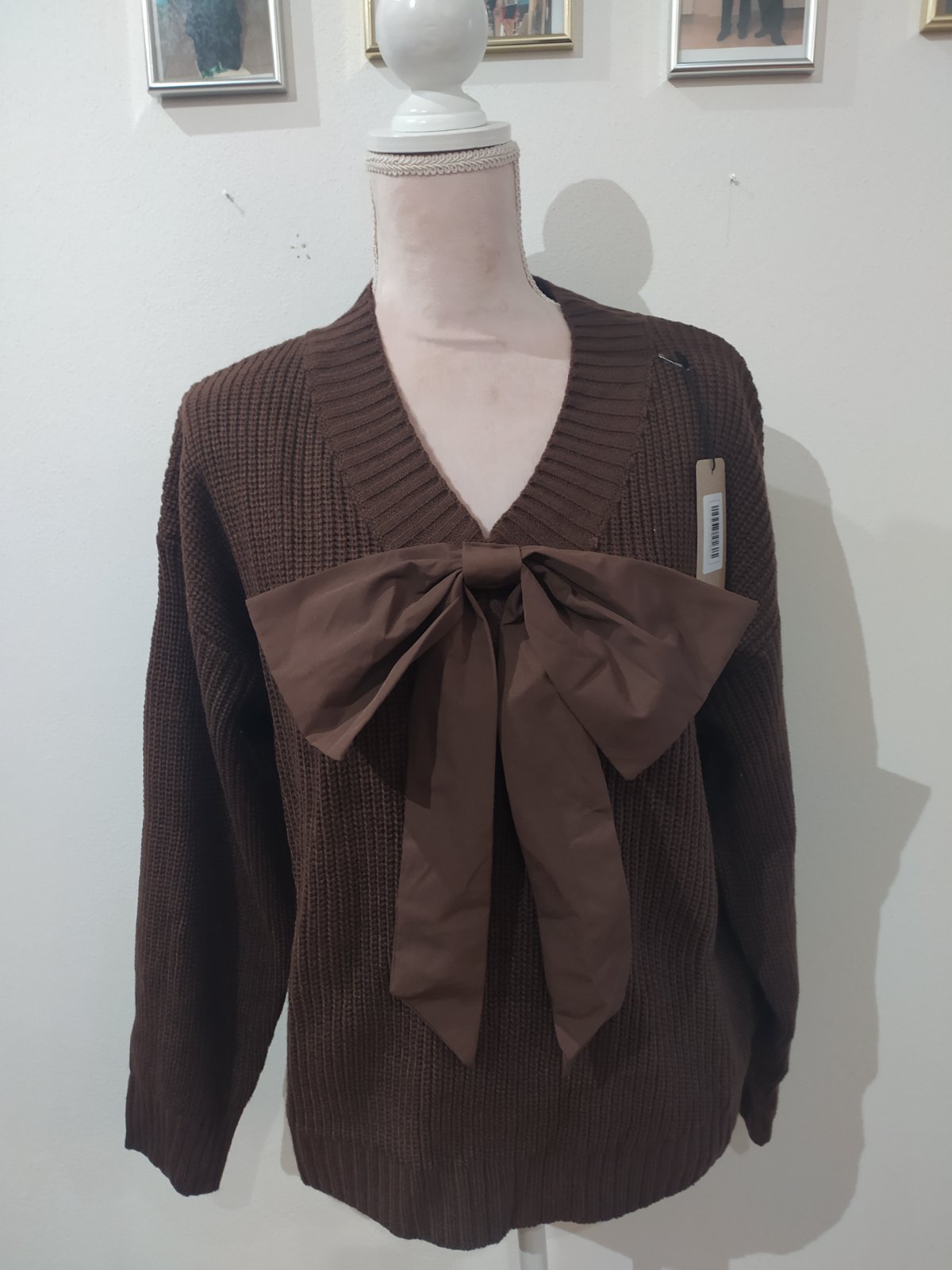 Krásny svetrík,s výstrihom,vpredu doplnený veľkou mašľou,veľ.M/L