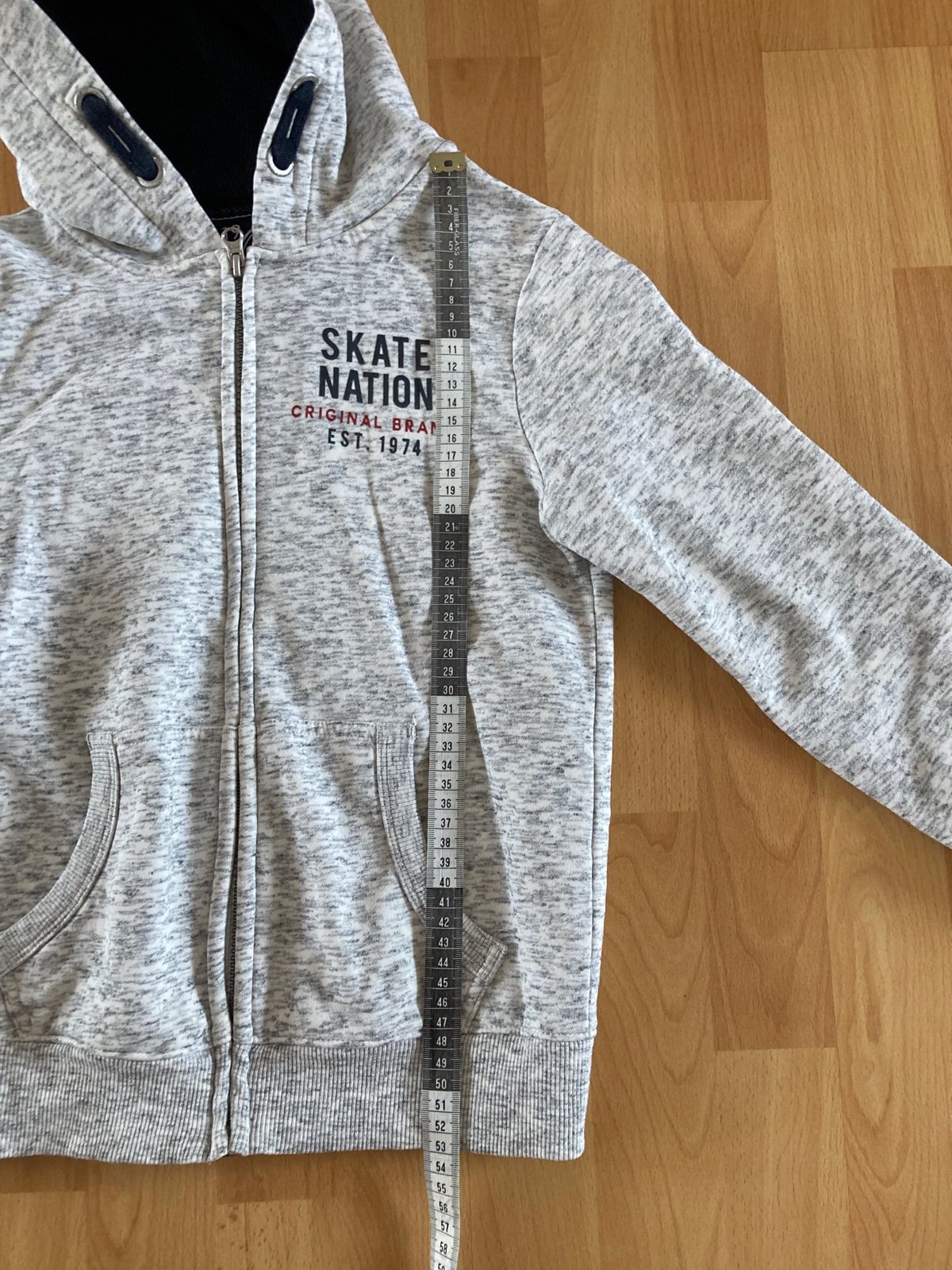 Mikina máličko nosena. Syn ju dostal a už mu bola vtedy len tak, tak, tak ju nestihol veľa vynosiť. 85%cotton, 15% polyester 52 cm dlžka od ramena 39 cm šírka pod pazuchami 33 cm rukav pod pazuch...