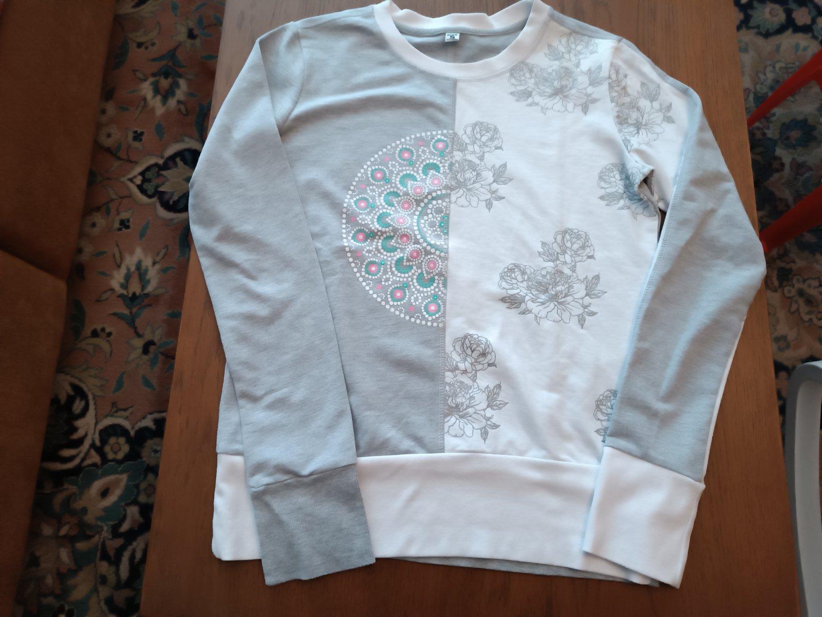 Dĺžka od ramena pri krku cca 63cm, šírka pod pazuchami cca 49cmx2, rukáv od krku cca 77cm.