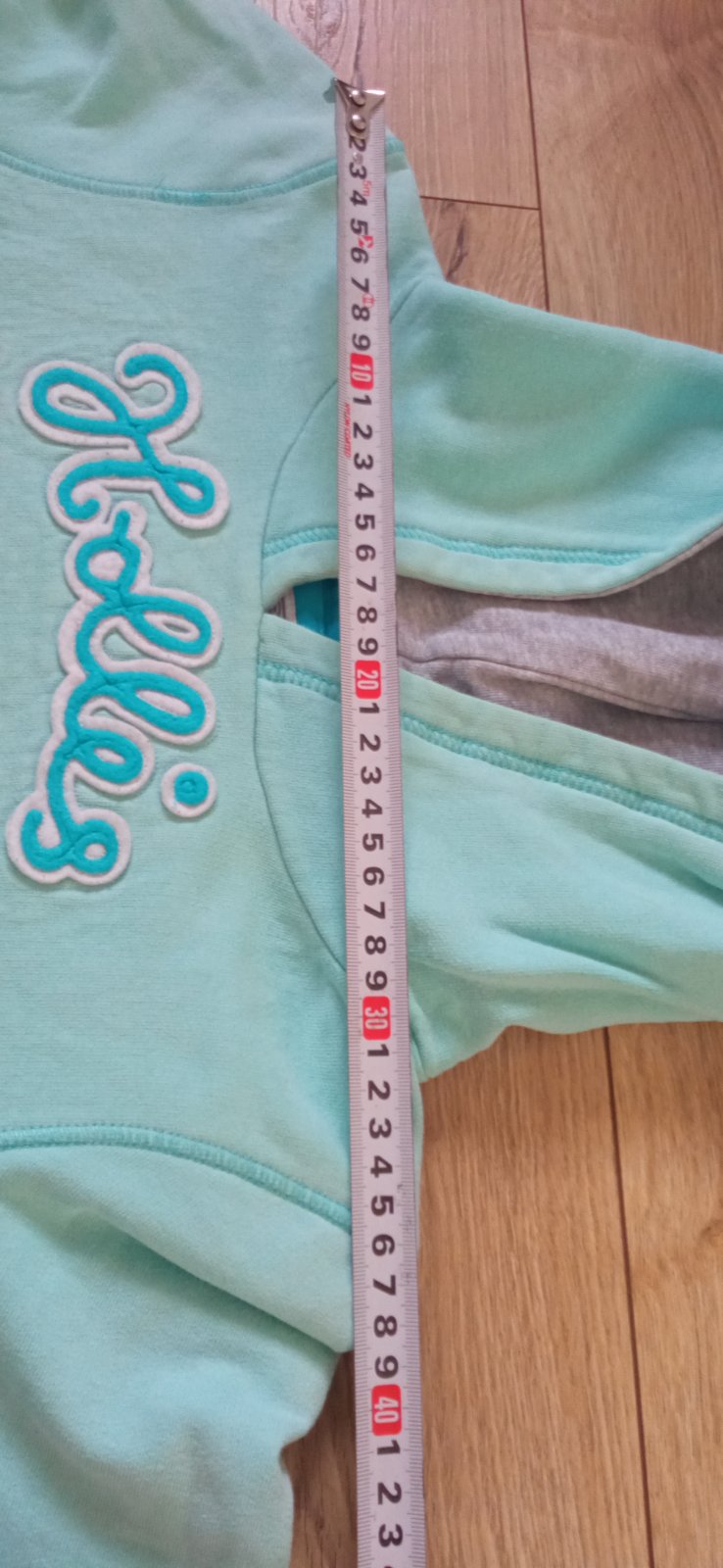 Predám málo nosenú dámsku mikinu svetlo modrej alebo jemne tyrkysovej farby. Je dlhšia, aj rukávy. Je vhodná na väčšie XS až S. Rozmery viď foto. Je bez poškodení, v peknom stave bez žmolkov.