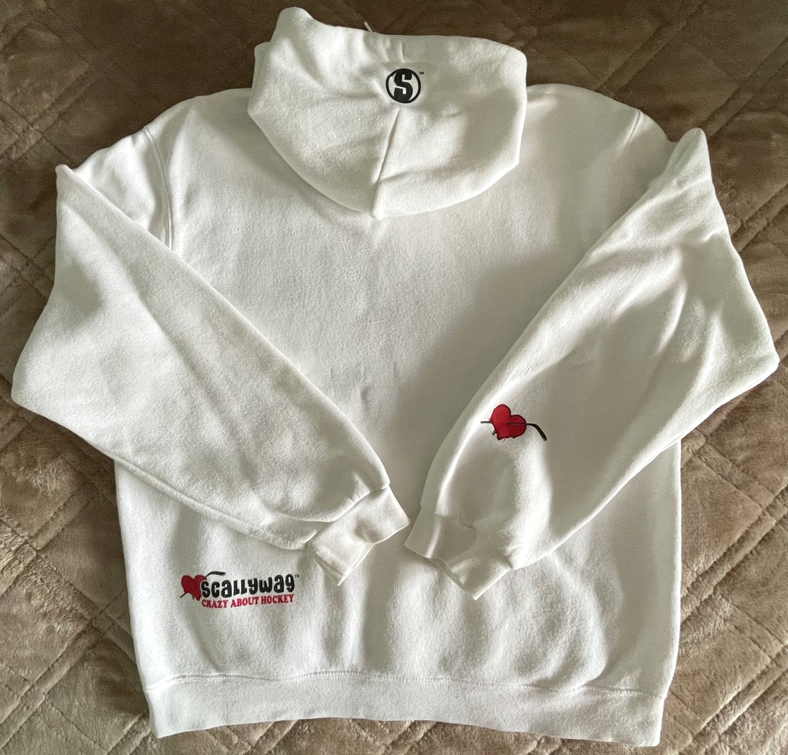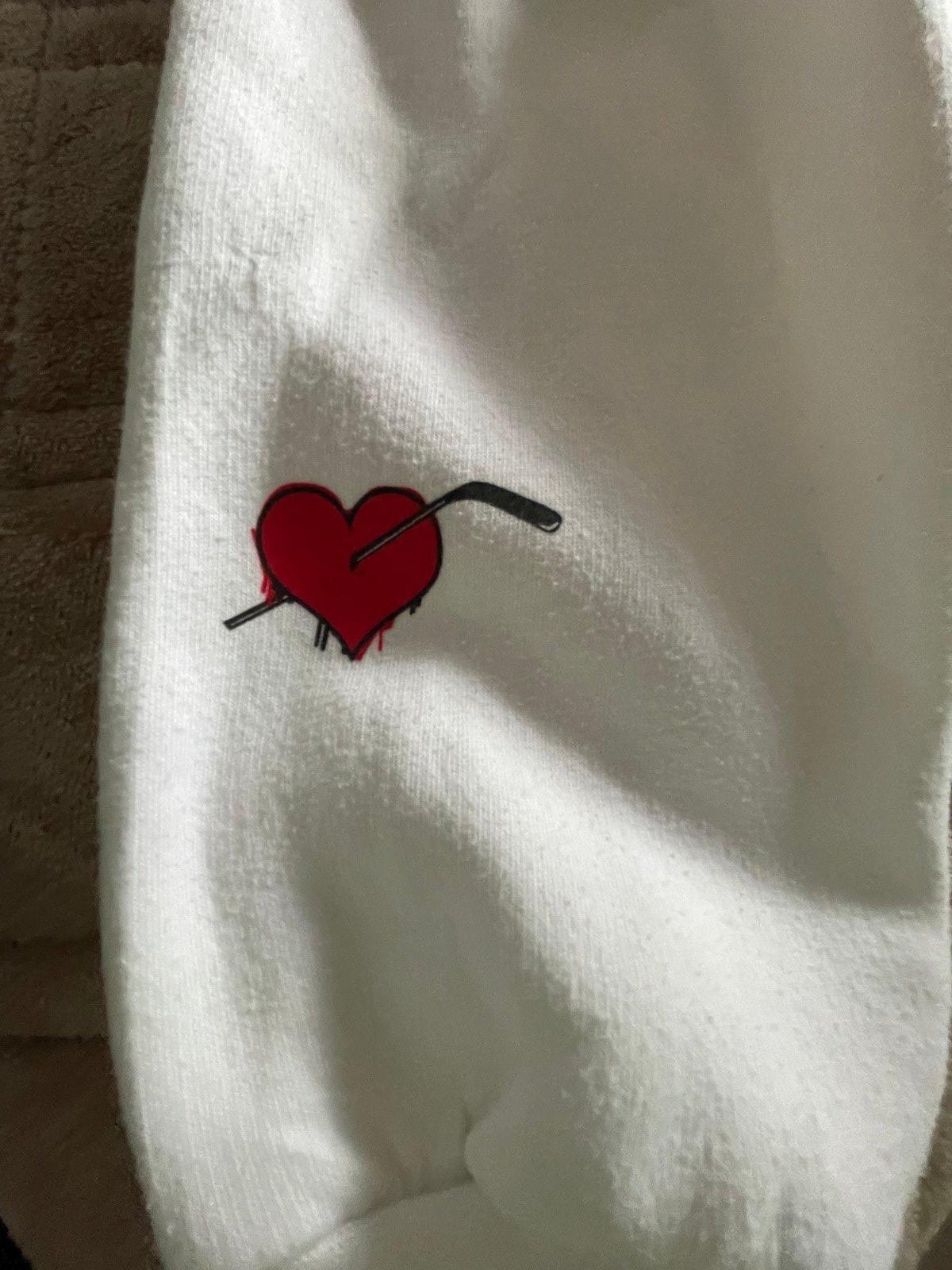 Unisex mikina I love hockey. Velkosť M. Biela barba s potlačou. S kapucňou a vreckami vpredu.
