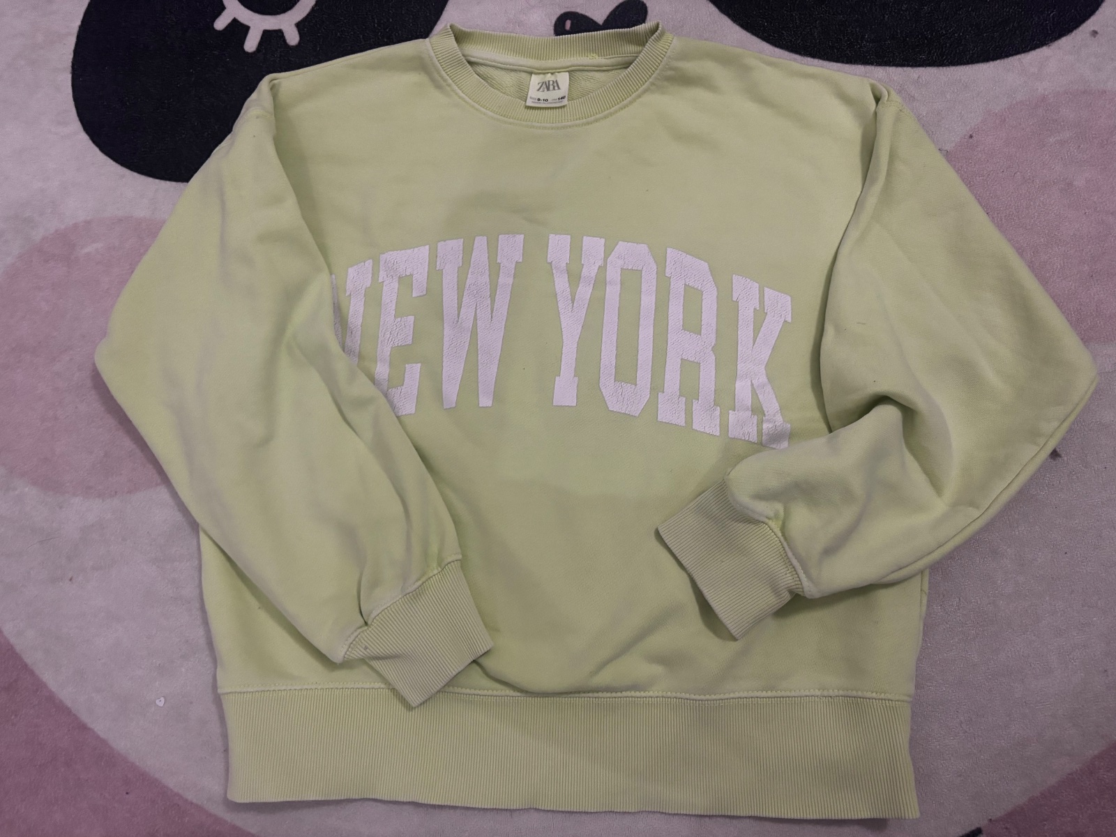 Krikľavo zeleno zlta mikina, parkrat oblecena,velkost pisana 9-10 rokov 140