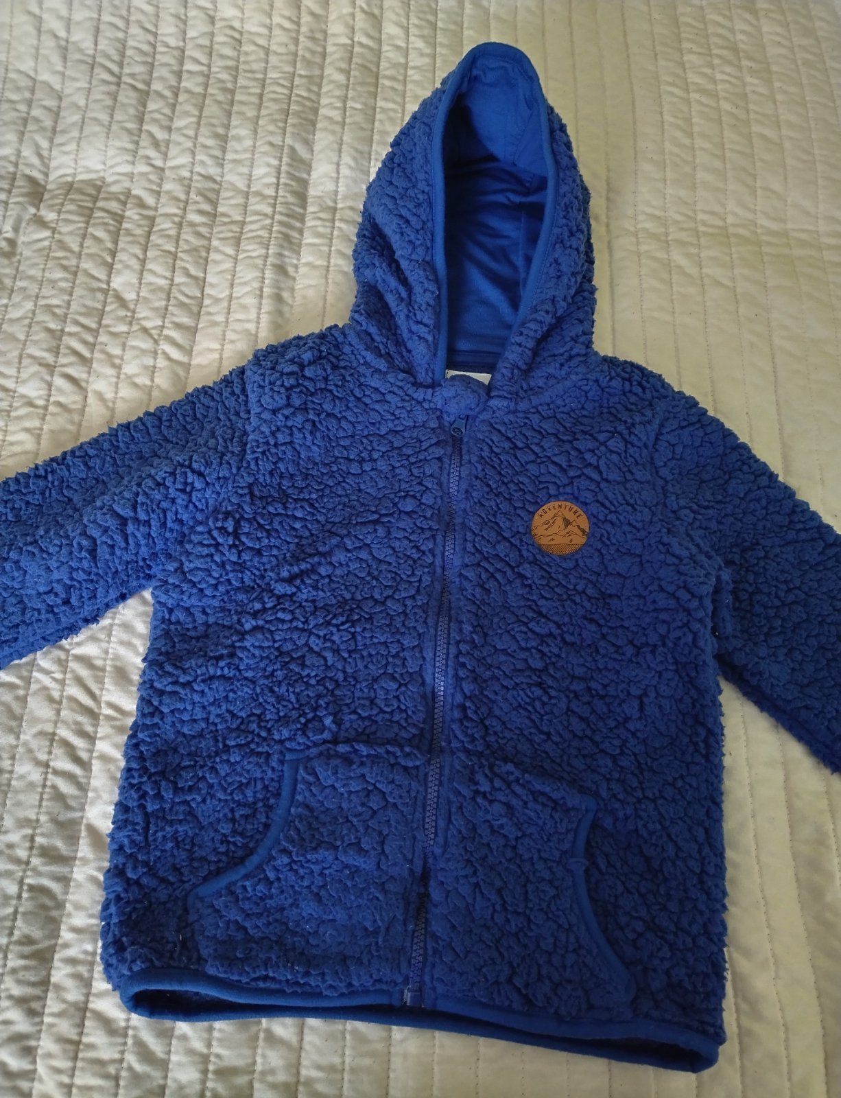 Teplučká huňatá tmavomodrá mikina, veľkosť 122, značka Sinsay, s kapucňou, na zips, bez poškodenia.