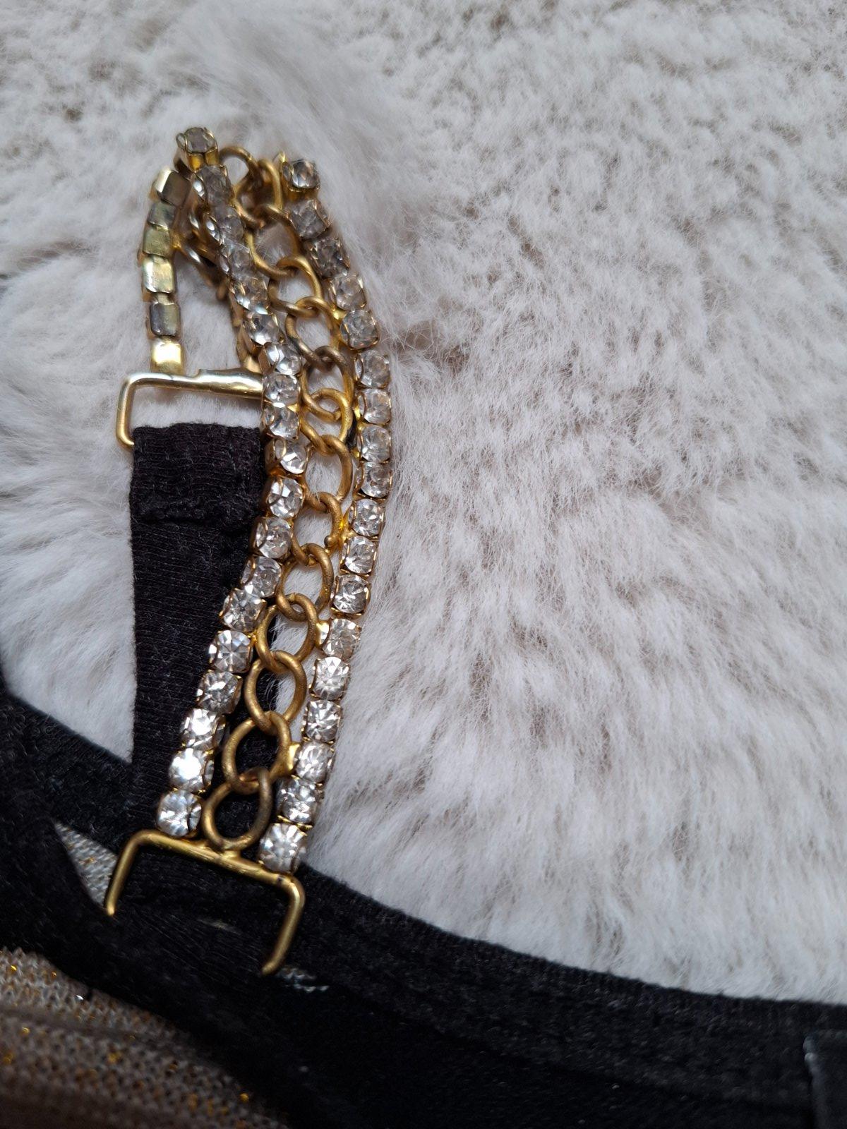 Asi 2 x oblečené, ale dlhším skladovanim sú tie vrchné ramienka také tmavšie. V prípade potreby sa dajú odstrániť odstihnutim. Iné poškodenia nemá. Veľkosť je univerzálna, dĺžka sa dá prispôsobiť, bud ako tunika, alebo len svetrík. Cena 4 Eur