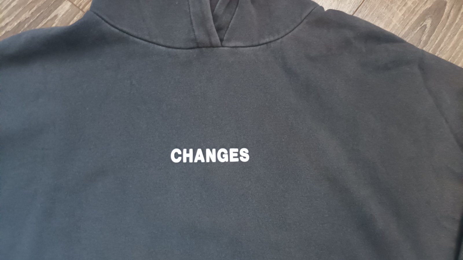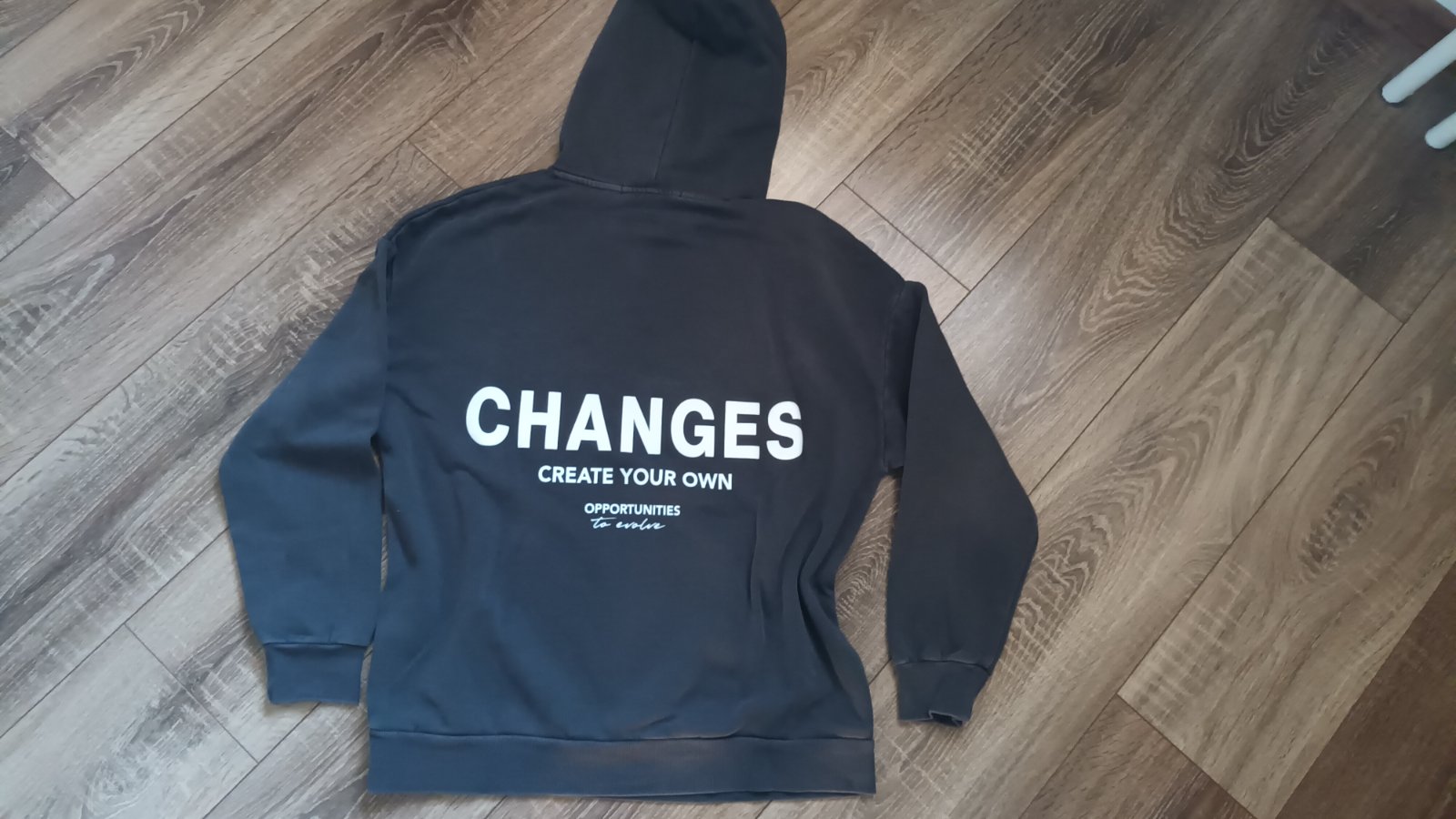 So svetlo ružovým napisom, malo nosena, v dobrom stave,rozmer v podpazusi je 41 x 2 cm, dlzka mikiny od ramena 53 cm a dlzka rukava od ramena( cize od spodku goliera lebo je to v celku,nie prestrih...