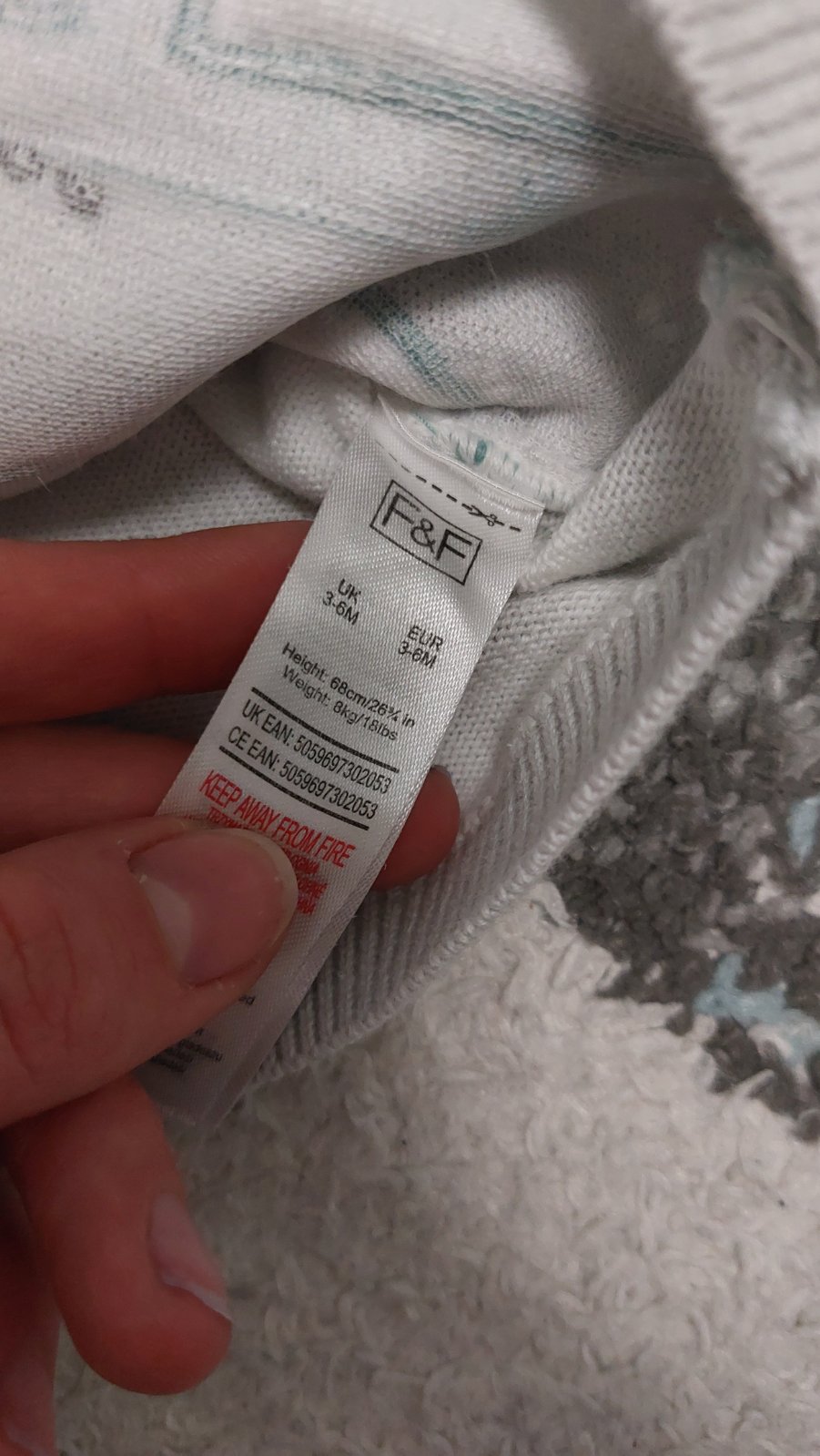 úžasný teplý a mäkkučký svetrík, farba biela sivá, veľkost 62, pre deti do 3 mesiacov. TOP stav, sveter je ako nový. značka F&F. Platba vopred na účet, na dobierku neposielam !!! ...