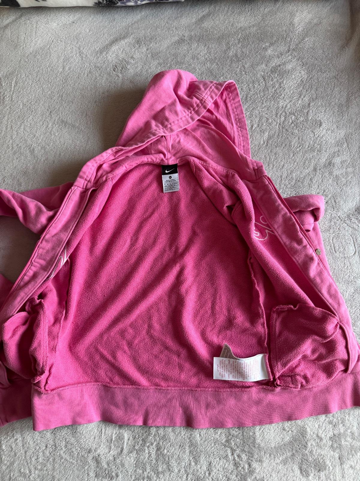 Mikina v peknom nosenom stave,bez poskodeni Farba je skôr taká staro-ruzova Veľkosť písaná 146/152 ale je menšia Veľkostne sedí tak na 134/140