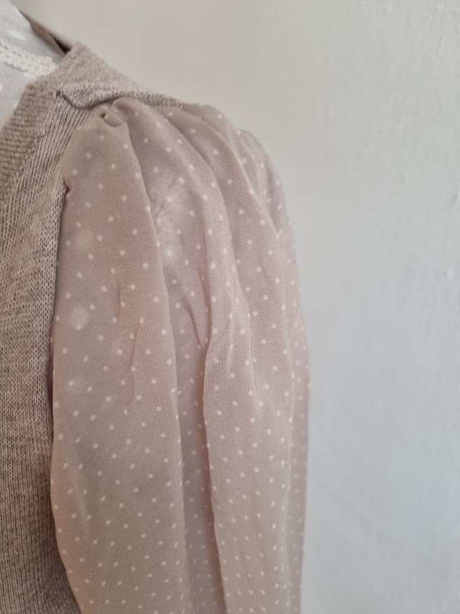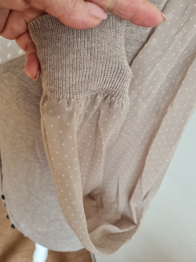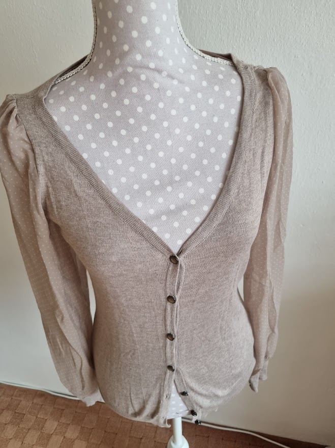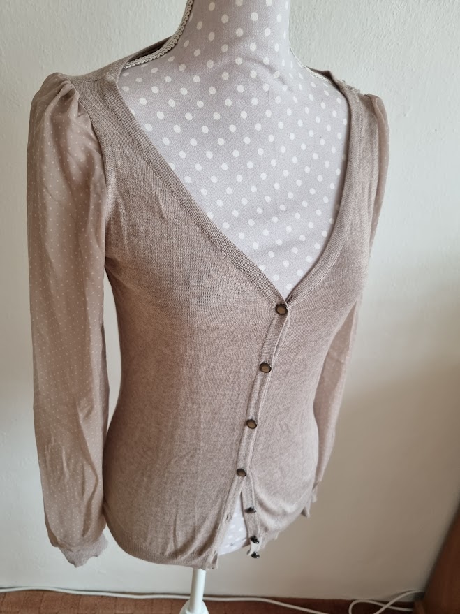 pise m, no sedi na S..farba taka pieskova do hneda..sifonove bodkovane rukavy