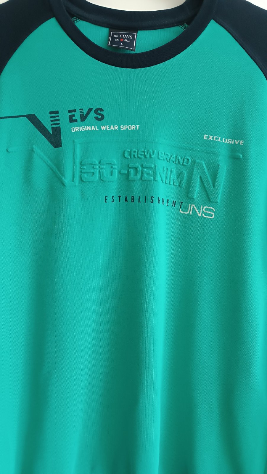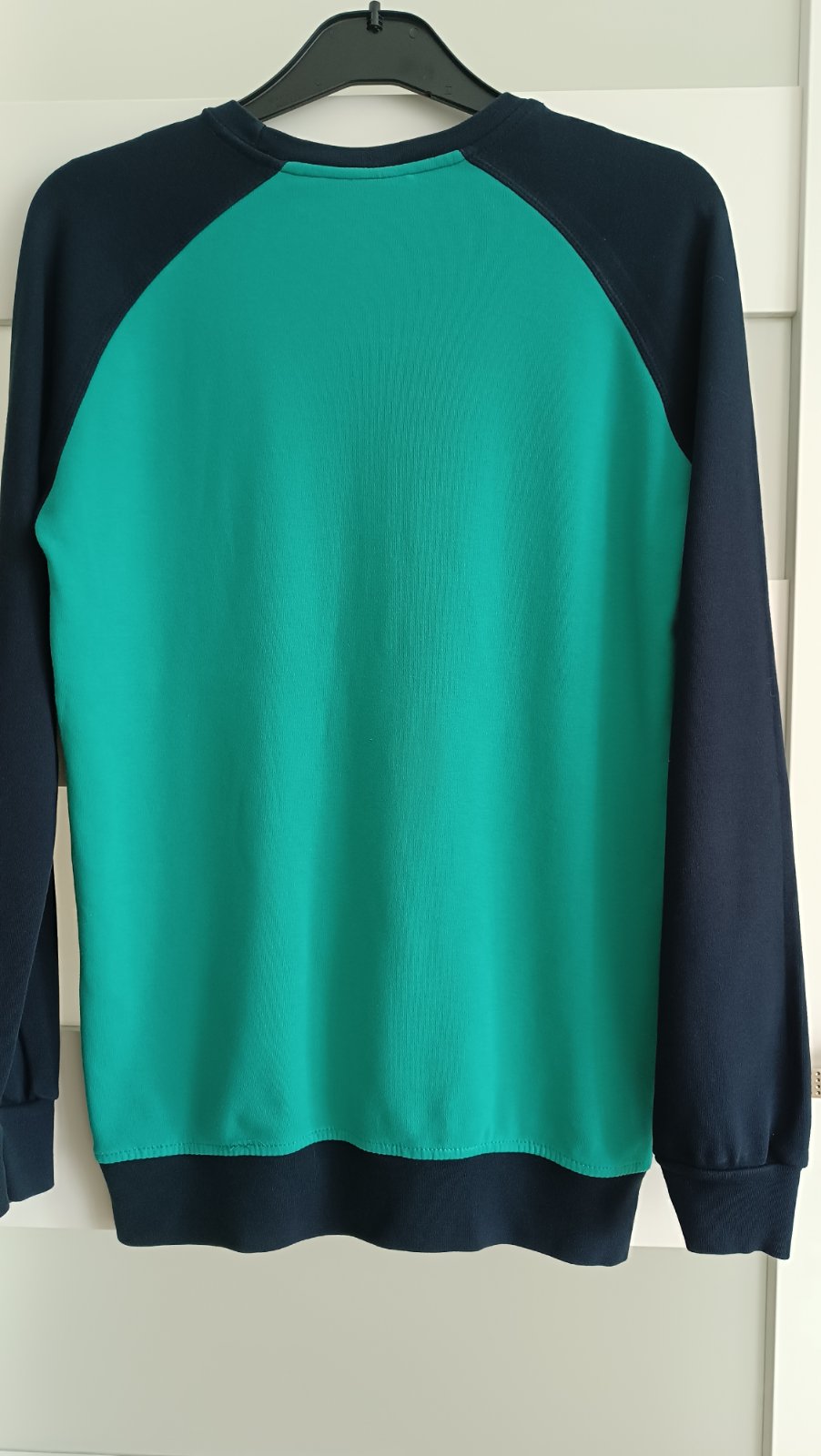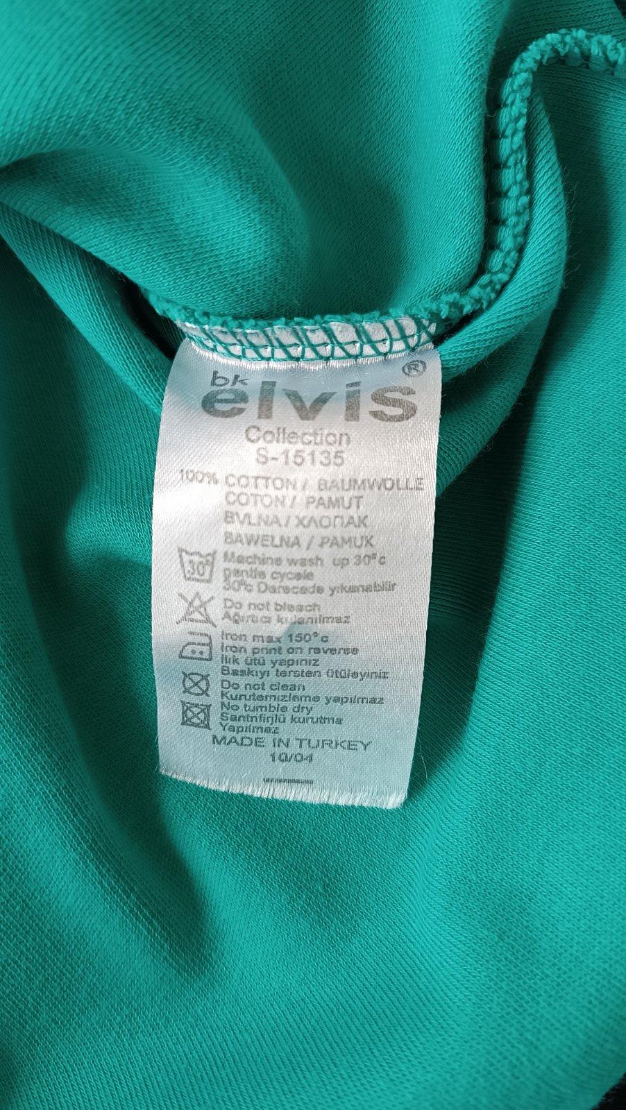 Zeleno modrá mikina, 100% bavlna, šírka 50 cm, dĺžka 69 cm, rukáv od krku 73 cm, značka BK Elvis, top stav