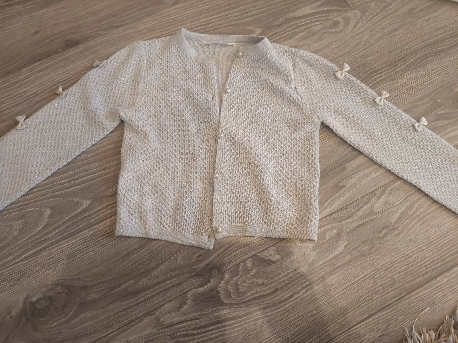 Predám krásny svetrík v top stave bez poškodenia sivý prerkany striebornou niťou a podobnými gombíkmi. Značka Cocodrillo a veľkosť 116. Cena 10 eur.