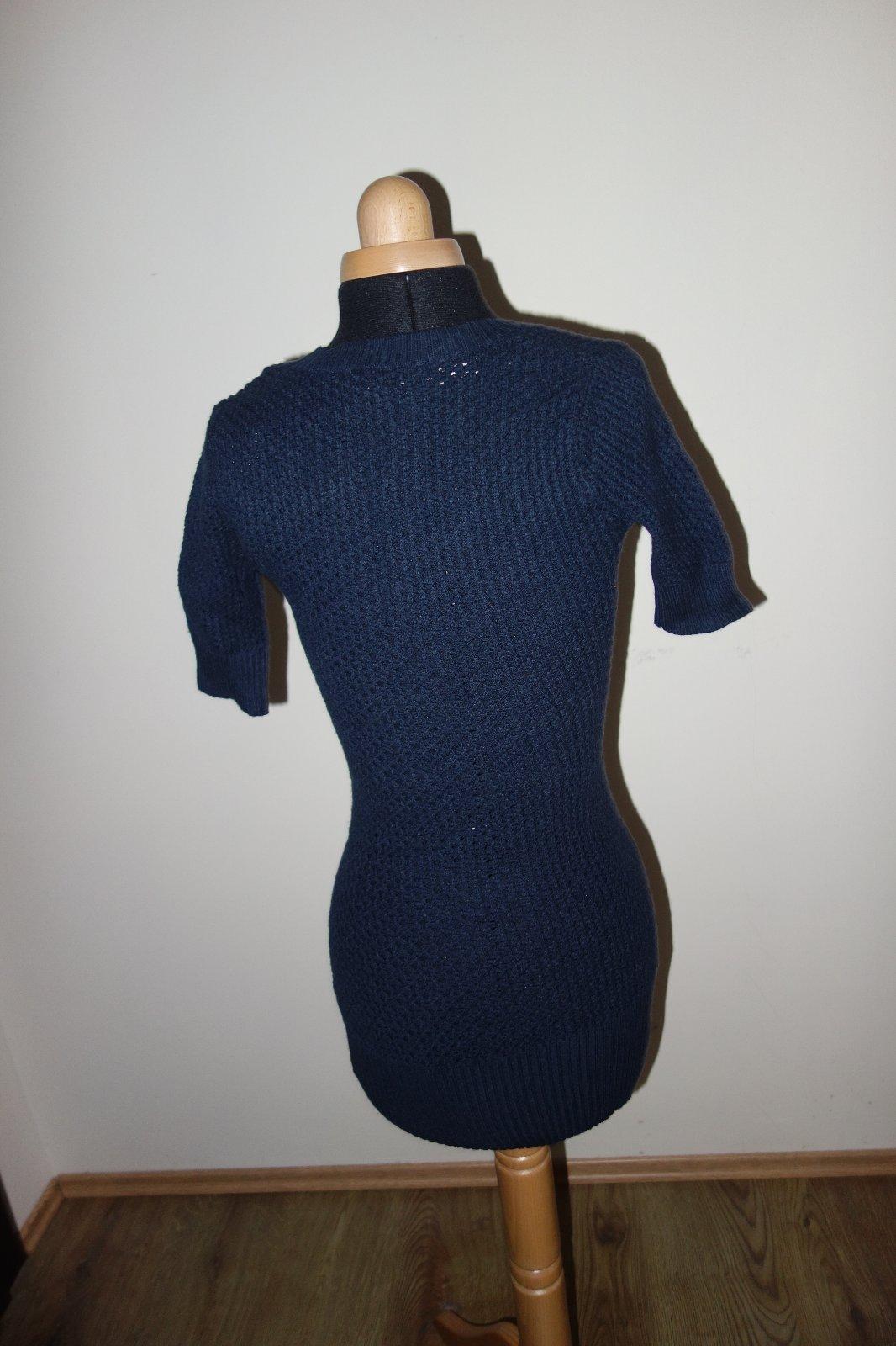 Krasny predlzeny pulovrik/pulovrikova tunicka vo vybornom stave. Velksot je uvedena ako M/M, ale podla mna mensi. Krasne obopina postavu. Na fotke vobec tak neukaze, je tmavomodry.