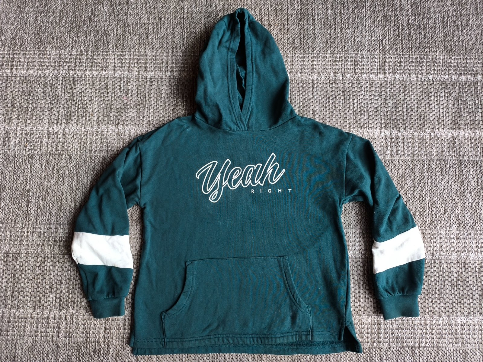 Bavlnená mikina s kapucňou, v super stave. Veľkosť 134, 9 rokov. Dĺžka 52cm, šírka 45cm, rukáv od ramena 43cm.