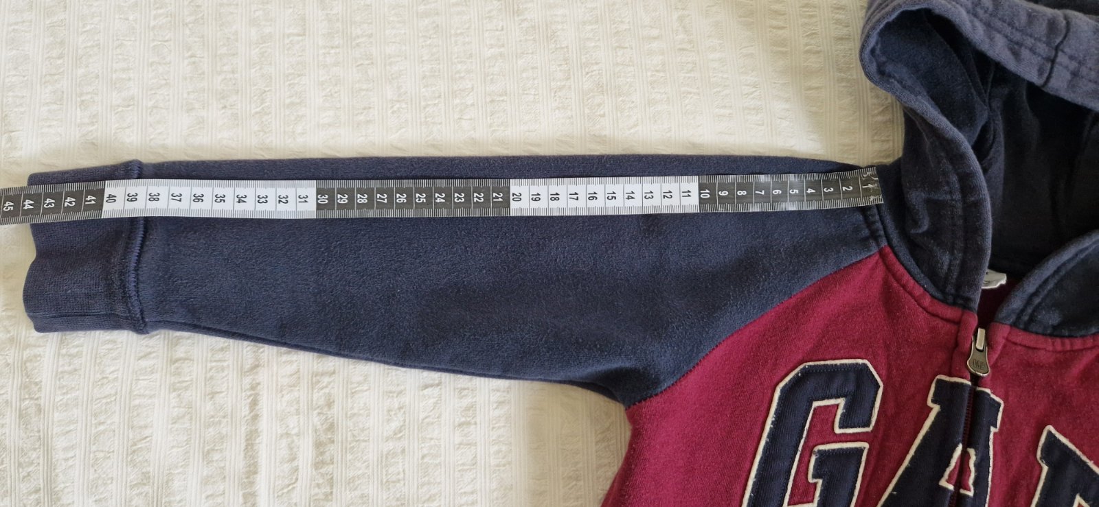 Krasna mikinka znacky GAP vo velkosti 92. Nosena jemne minizmolky z prania, inak krasna. Celkova dlzka 36 cm, sirka pod pazuchami 32 cm a rukav od pazuchy 27 cm. Velkost je pisana na 3 roky - ale s...