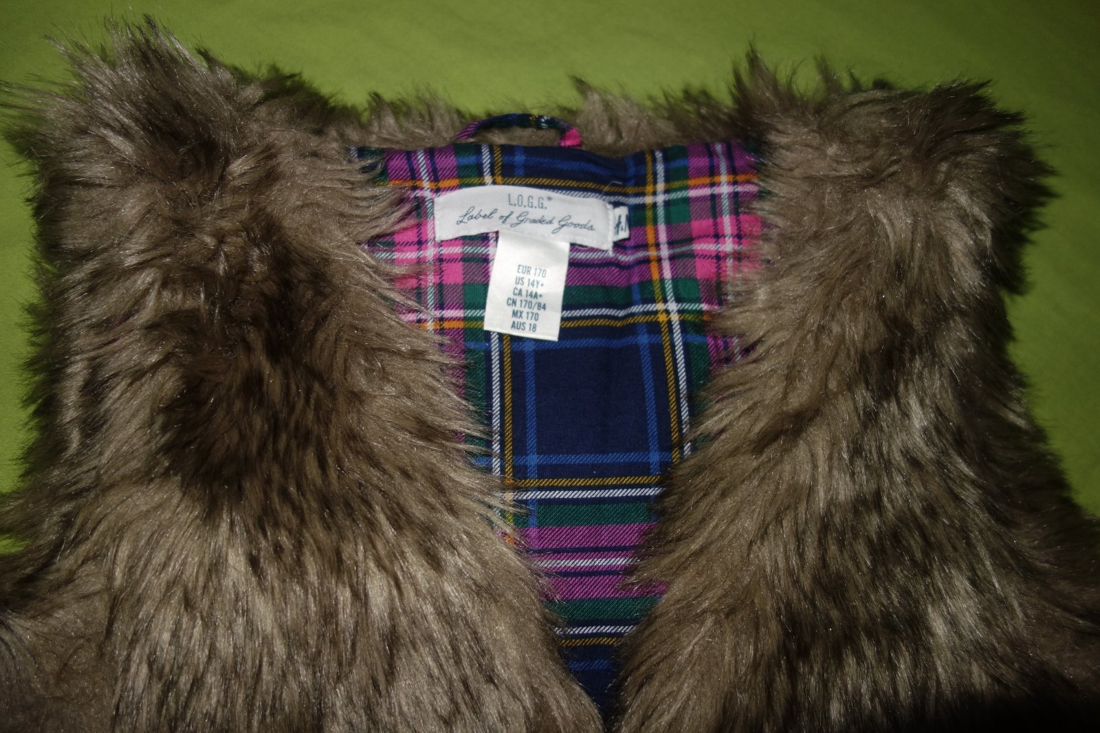 Krasna vesticka z umelej kozusinky vo vybornom stave.