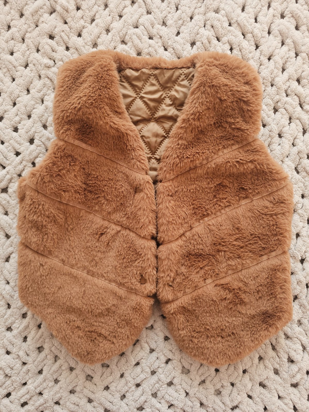 Krásna, jemná a mäkkučká vestička z umelej kožušiny ozvláštni každý outfit🎀hodí sa na bežné aj príležitostné nosenie, krásne vynikne aj na fotkách. Vnútorná vrstva zo 100% bavlny, nenápadné zapína...