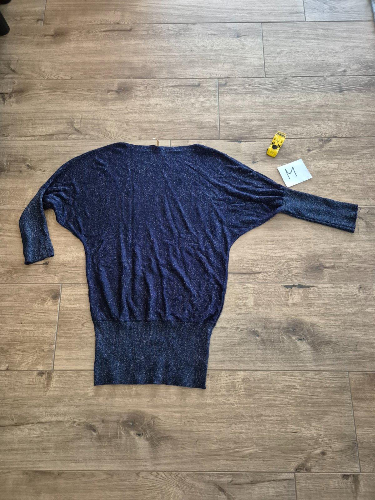 Predám tenký bavlnený svetrík. Super oversize, jemne croptop strih na elegantné aj bežné nosenie. Veľkosť uvedená M, sedí na S-M. Dĺžka 55cm, rukáv od krku 76cm. Krásna petrolejová farba. Top stav.