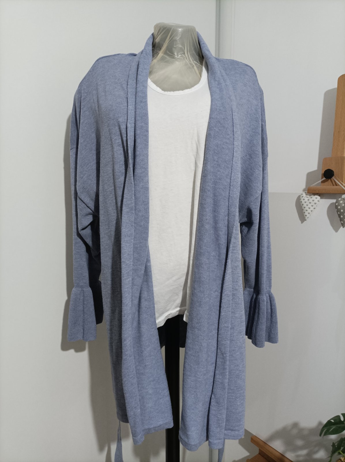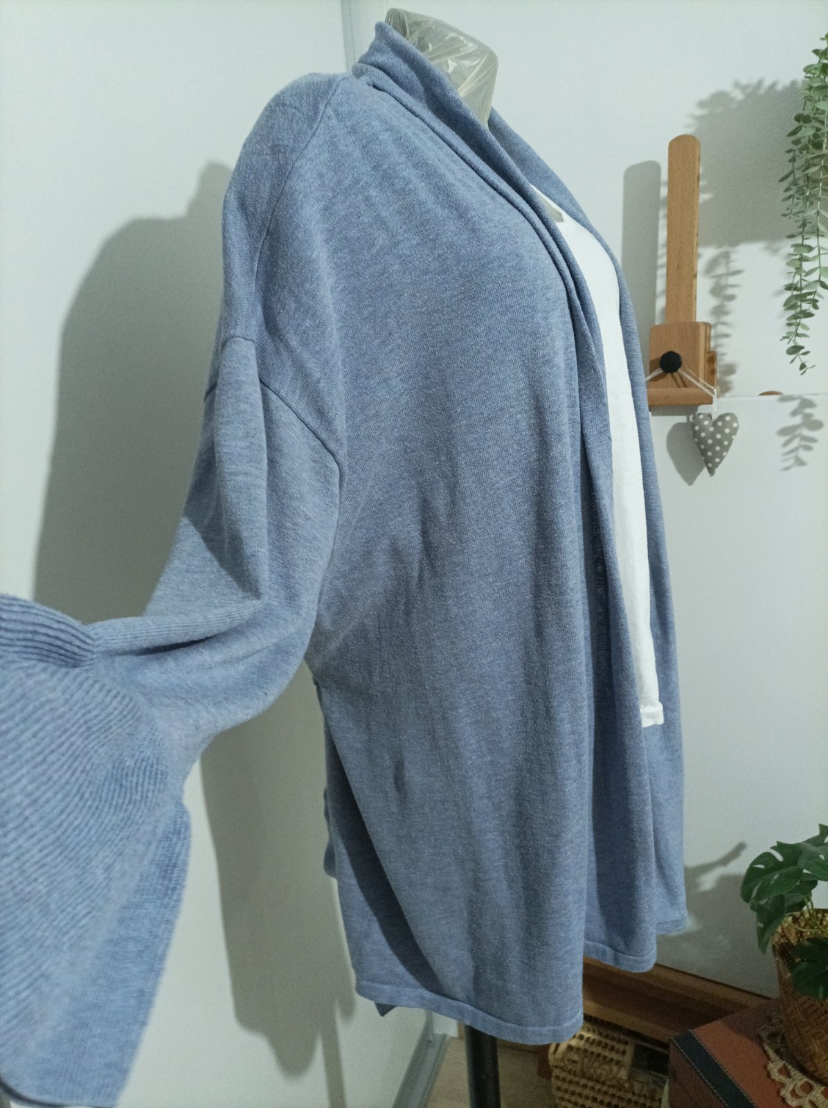 Svetrík na viazanie, farba je taká oceľovomodra, je veľmi strečový, veľmi príjemný na dotyk. Veľkosť 52/54 , má veľmi štýlové rukávy, tak nevyzerá obyčajne :-) oblečený asi 2 krát, impulzívna kúpa , preto predávam :-) top stav , vyzerá super zaviazaný aj nezaviazany.daj k tomu Biele tričko, džíny a ideš :-)