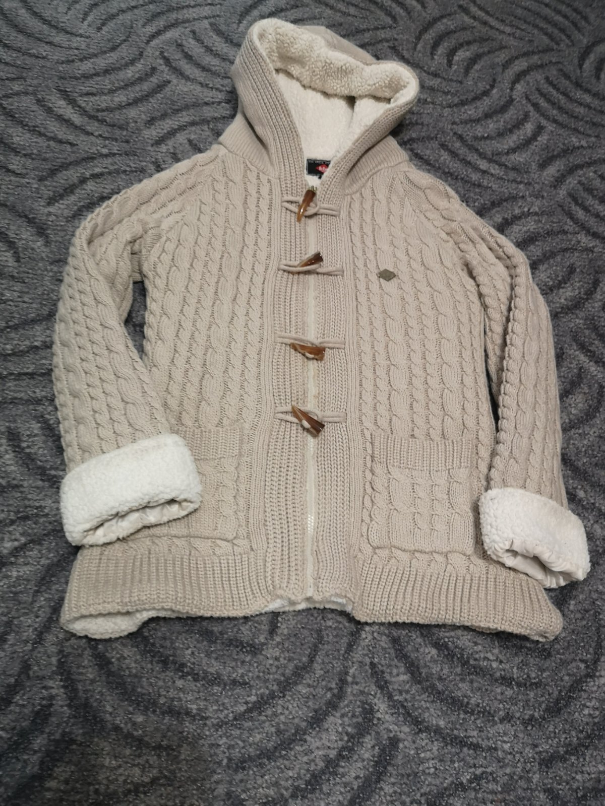 Teplý, hrubší, príjemný materiál, v dobrom stave