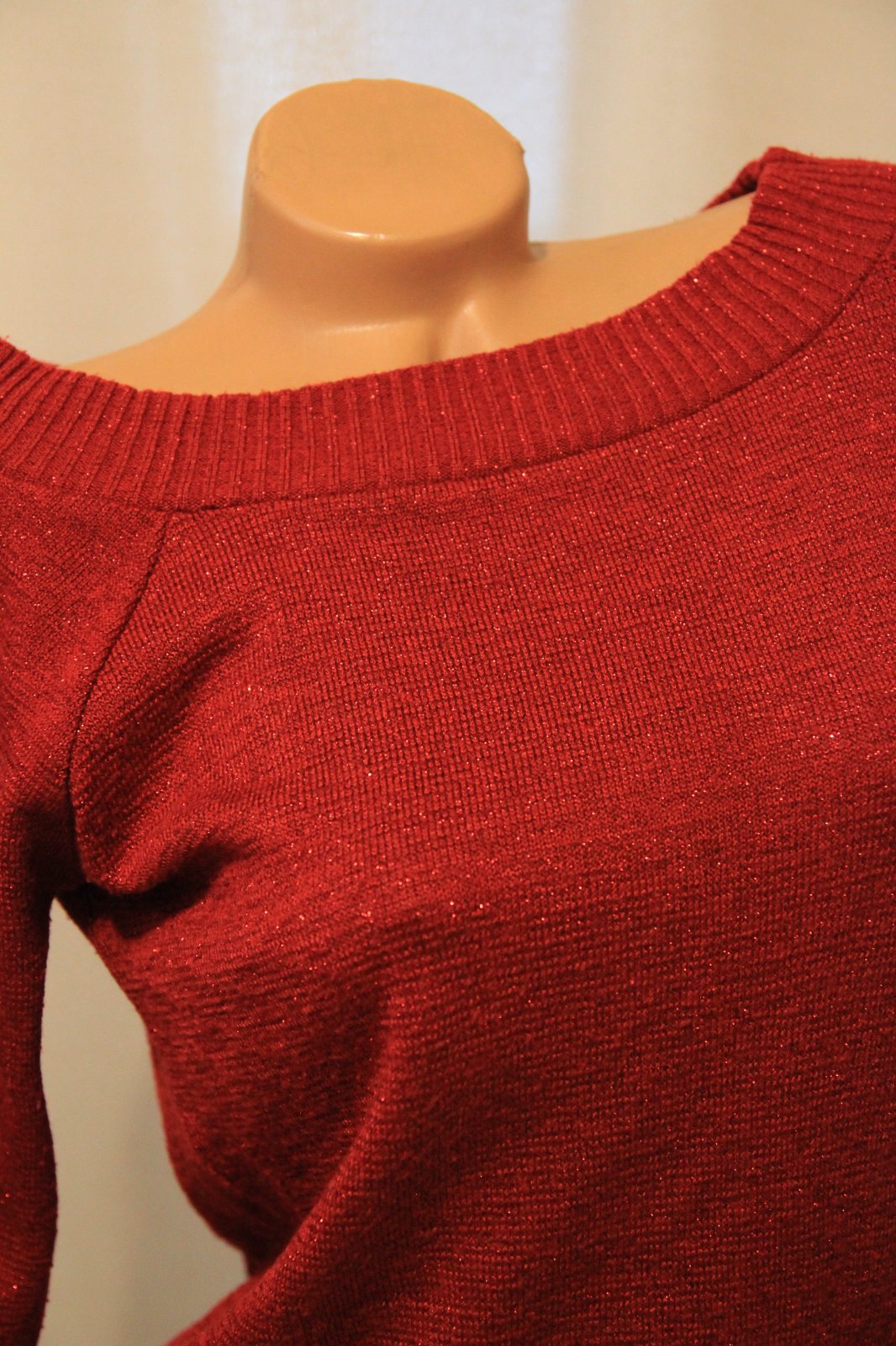 Červený lesklý sveter, veľkosť M/L. Top stav. Elastický materiál.