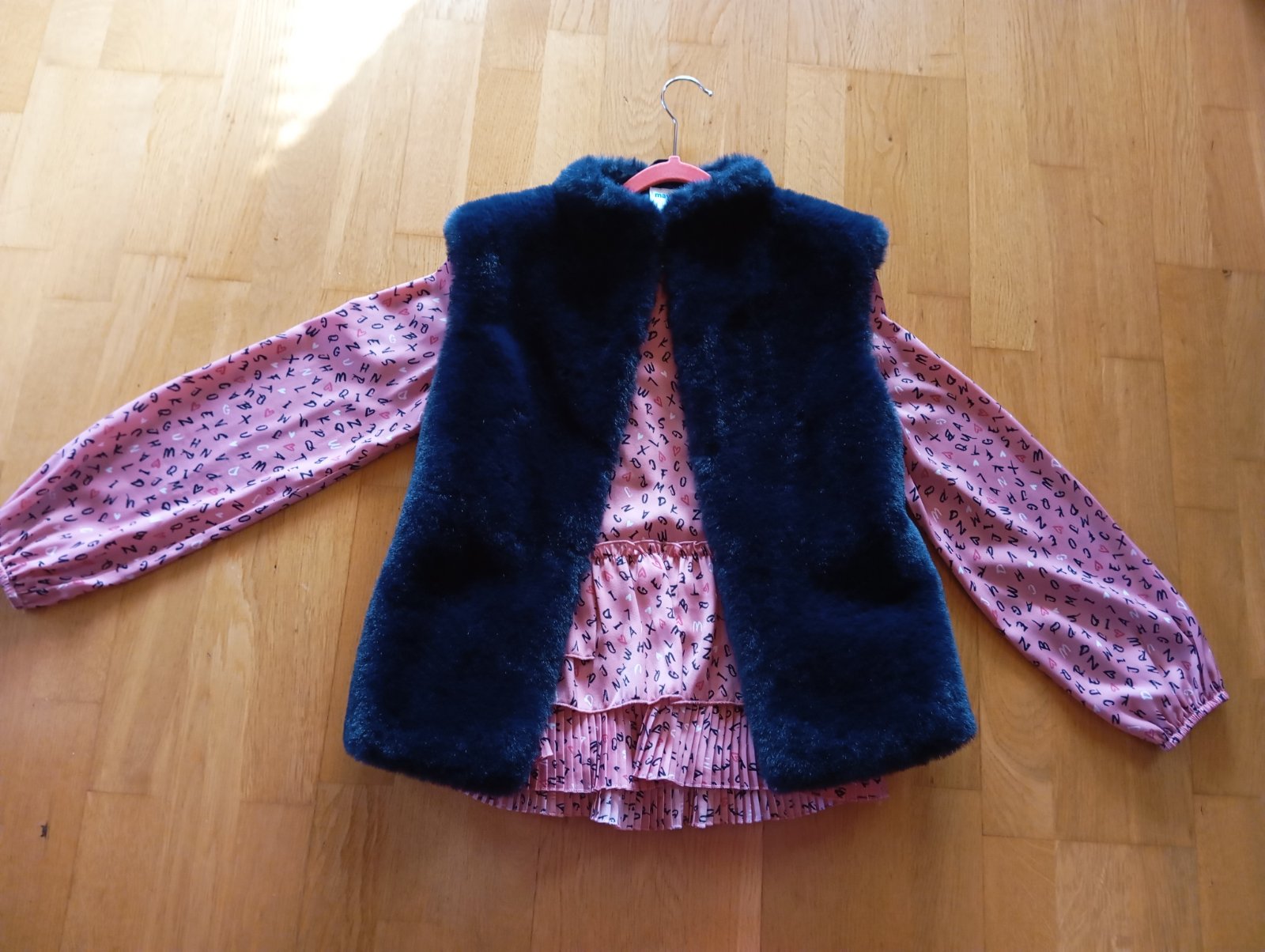 Hebučká vestička, veľ. 140, kvalitnej značky Mayoral. Bez poškodení, super stav! Máme k nej aj blúzku, ktorá sa hodí práve k nej. Hoci je blúzka veľ. 152, sedí priamo veľkosťou na túto vestu. Vestička s blúzkou sú odfotené na poslednej fotke. Cena za blúzku je 13,50 €, cena za vestu je 14,50 €, ale ak by ste zobrali obe, predám za 27 € spolu.