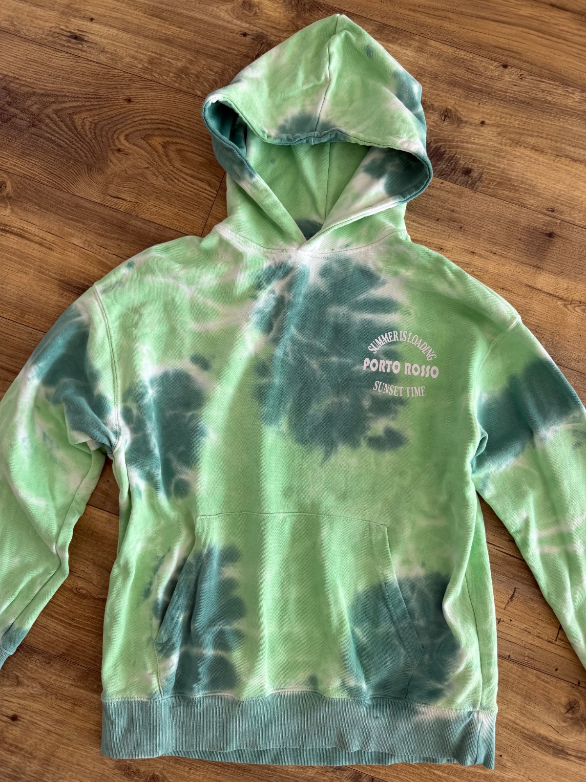 Predám svieťacozelenú mikinu, veľkosť písaná 152, ale určite je väčšia...š 50 CM, d 60 CM, rukáv od krku 74 CM.