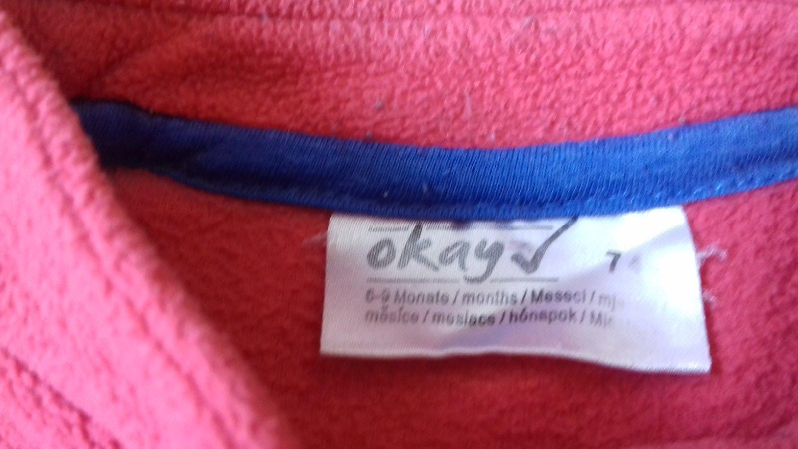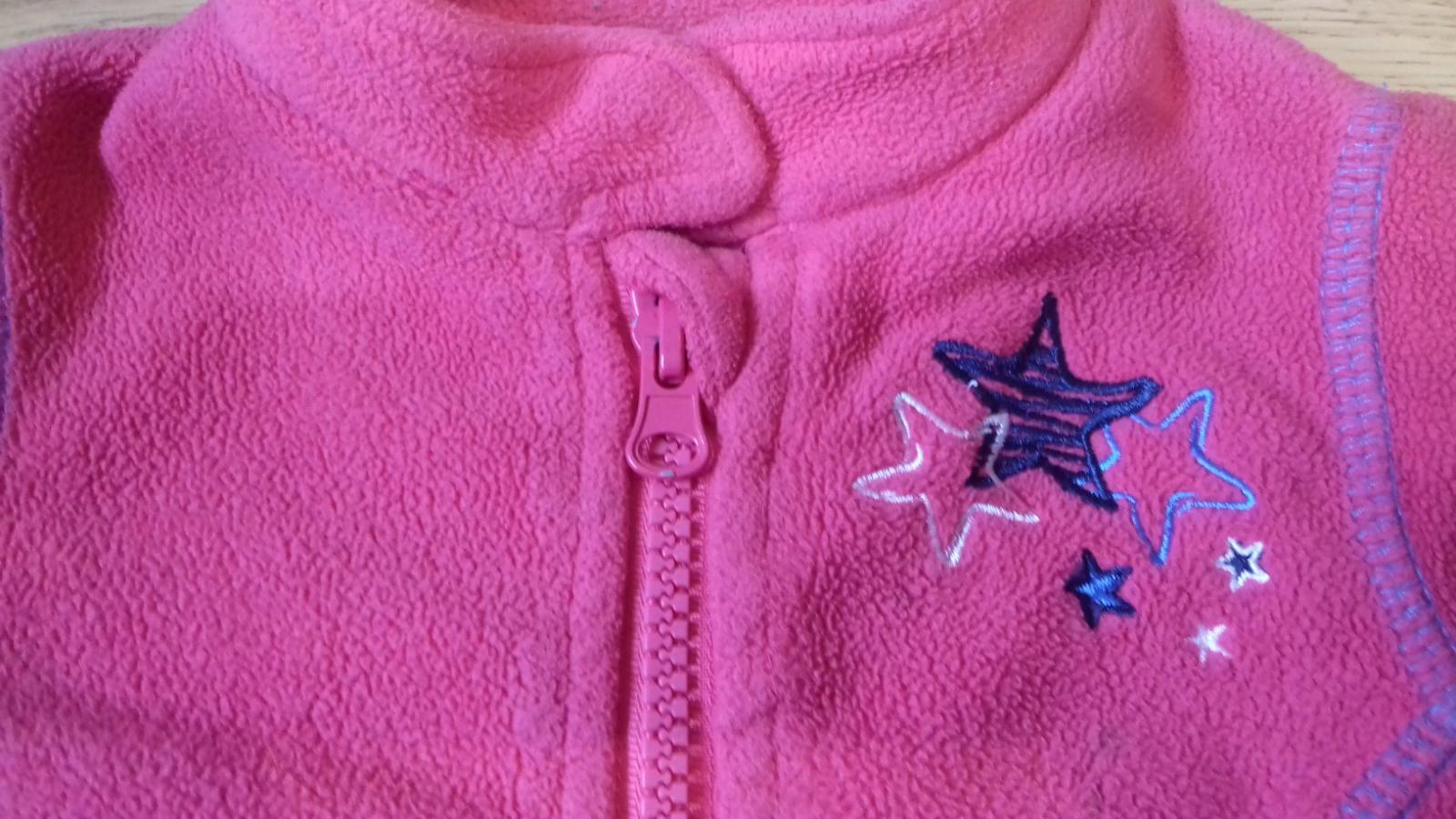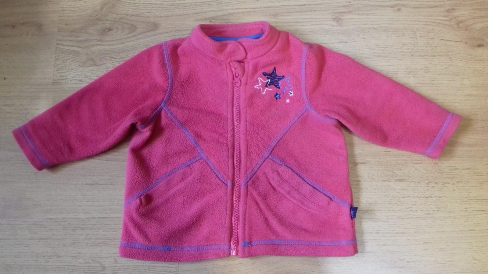 Flisová mikina v tmavo-lososovej farbe. Zapínanie na zips, nosená, ale absolútne bez poškodení vo výbornom stave.