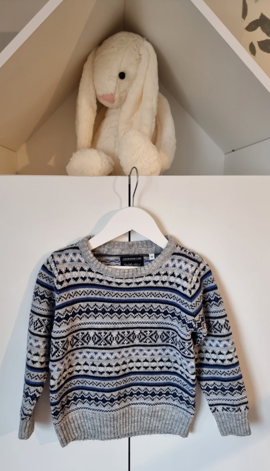 Krásny frajerský svetrík pre chlapcov. 100% stav, žiadne žmolky, oblečený len párkrát "sviatočne". Dĺžka meraná na chrbáte: 39 cm , šírka pod pazuchami: 34 cm , dĺžka rukáva od švíku na pleci: 35 cm.
