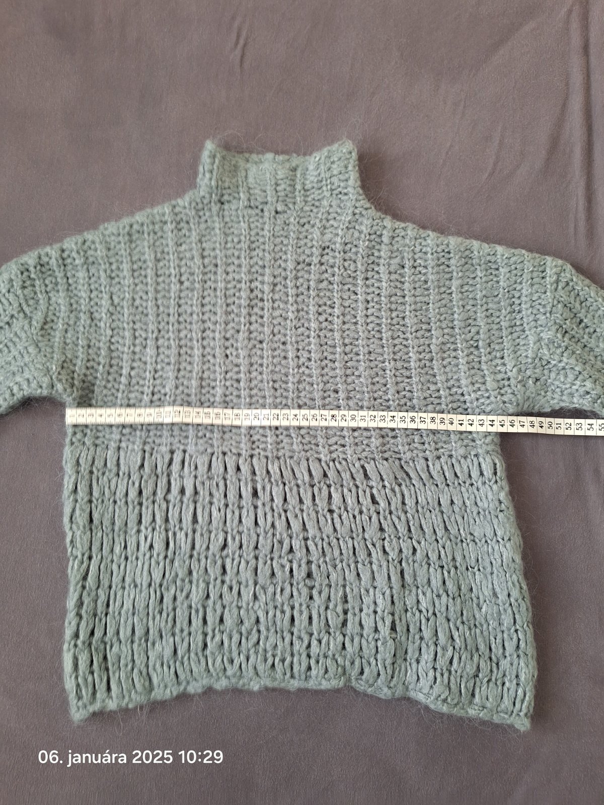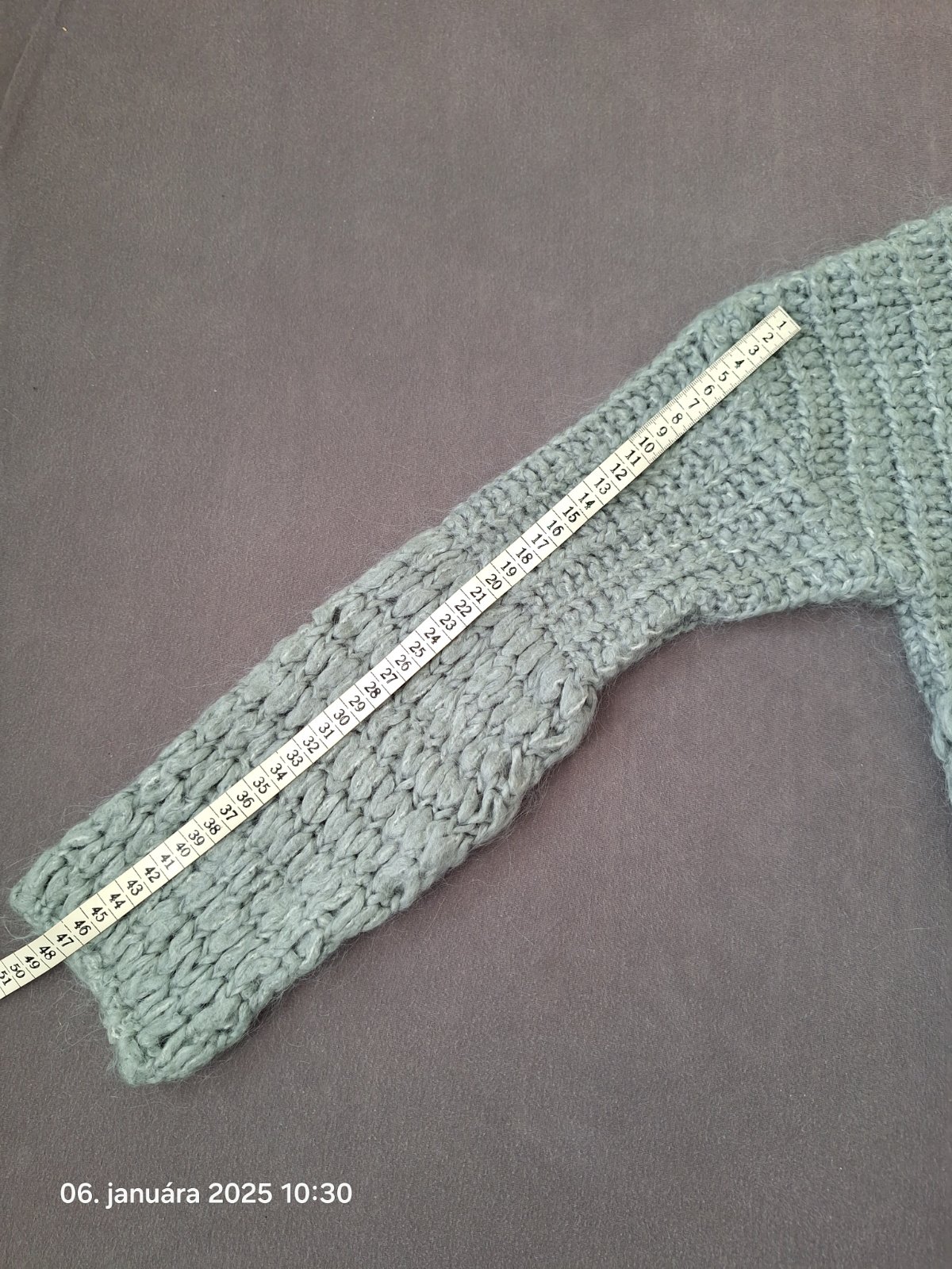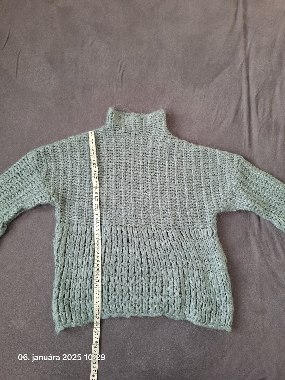 Nový pletený oversize sveter tyrkysovej farby, ktorý nebol nikdy využitý, len vyskúšaný a odstrihnuta visačka. Rozmery na foto.