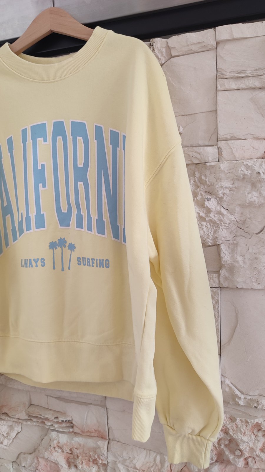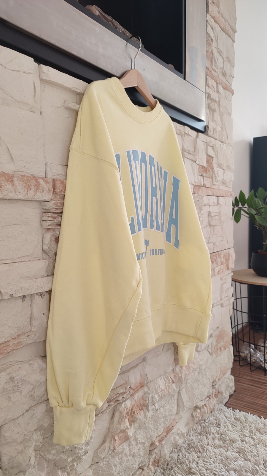 Ponukam slabozltu mikinu s potlačou. Zadný diel je predlzeny. Použitá možno 2 krat, mali sme toho veľa.