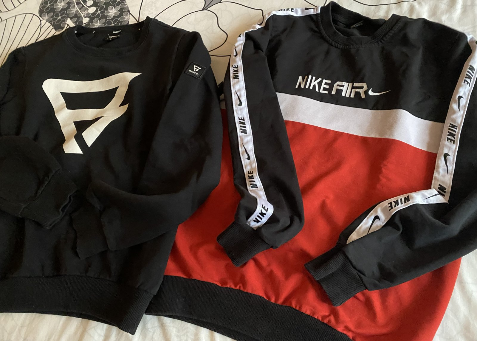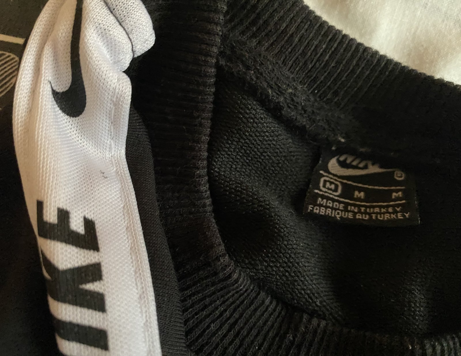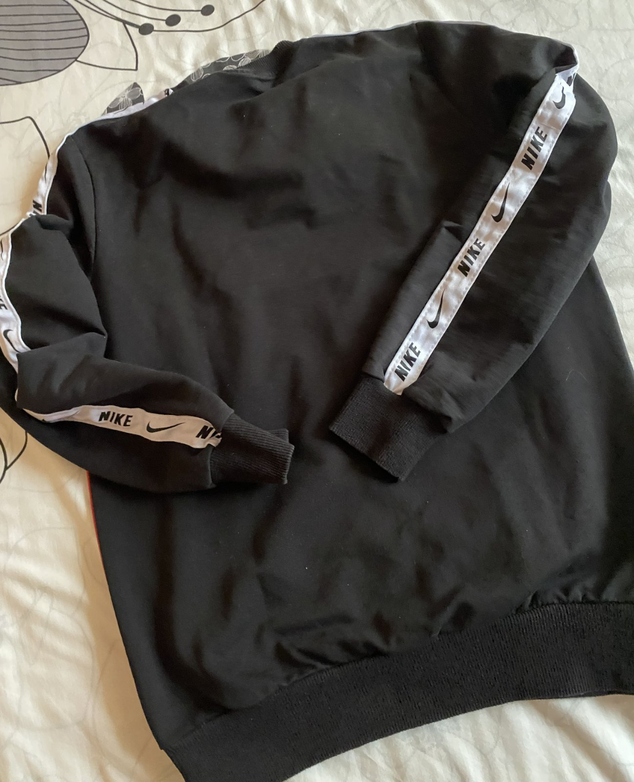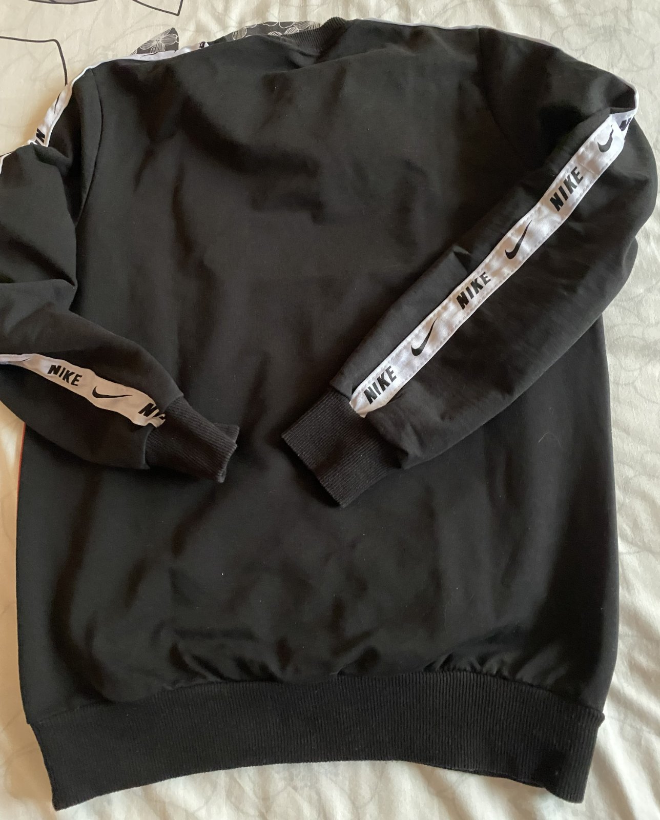 Mikina NIKE AIR v. M, málo nosená, vrchný materiál hladký - bez žmolkov, rebrované patenty v spodnej časti, na rukávoch a okolo krku, nápis trocha popukaný. Miery: dĺžka od krku dolu: 64cm, šírka v podpazuší: 48cmx2, rukáv od ramena: 58cm +13cm plece vrátane lemu okolo krku.