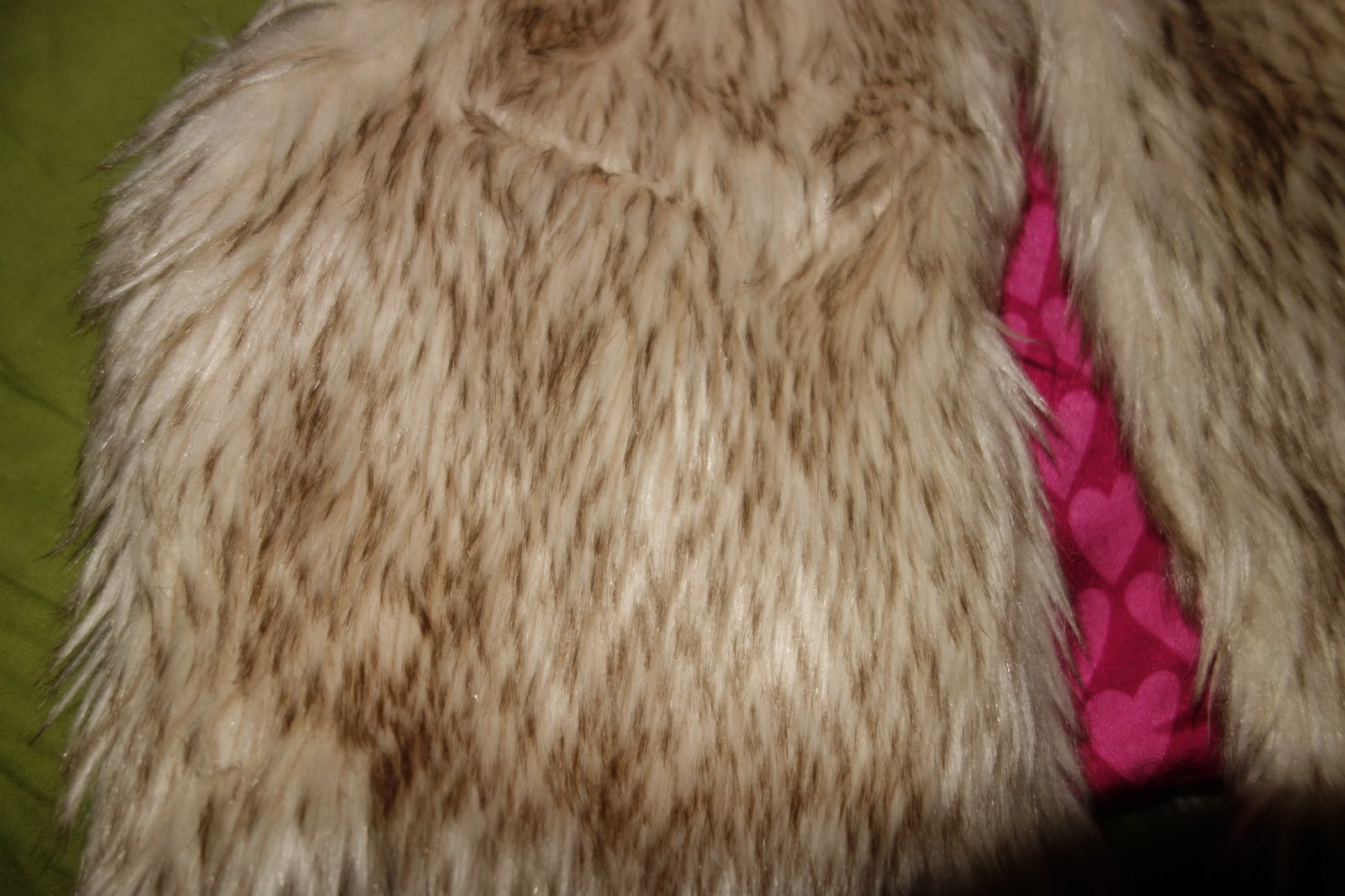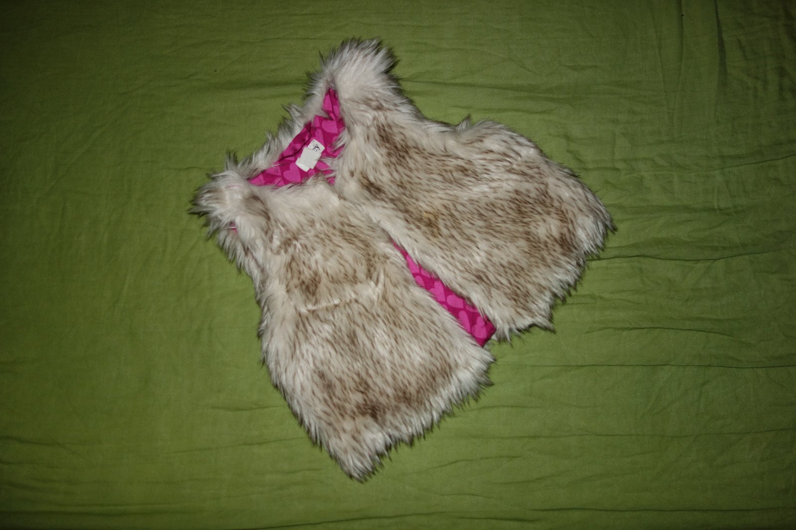 Krasna vesticka z umelej kozusinky vo velmi dobrom stave. Zapina sa na jeden gombicek.
