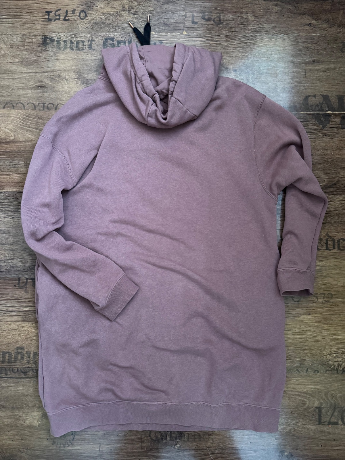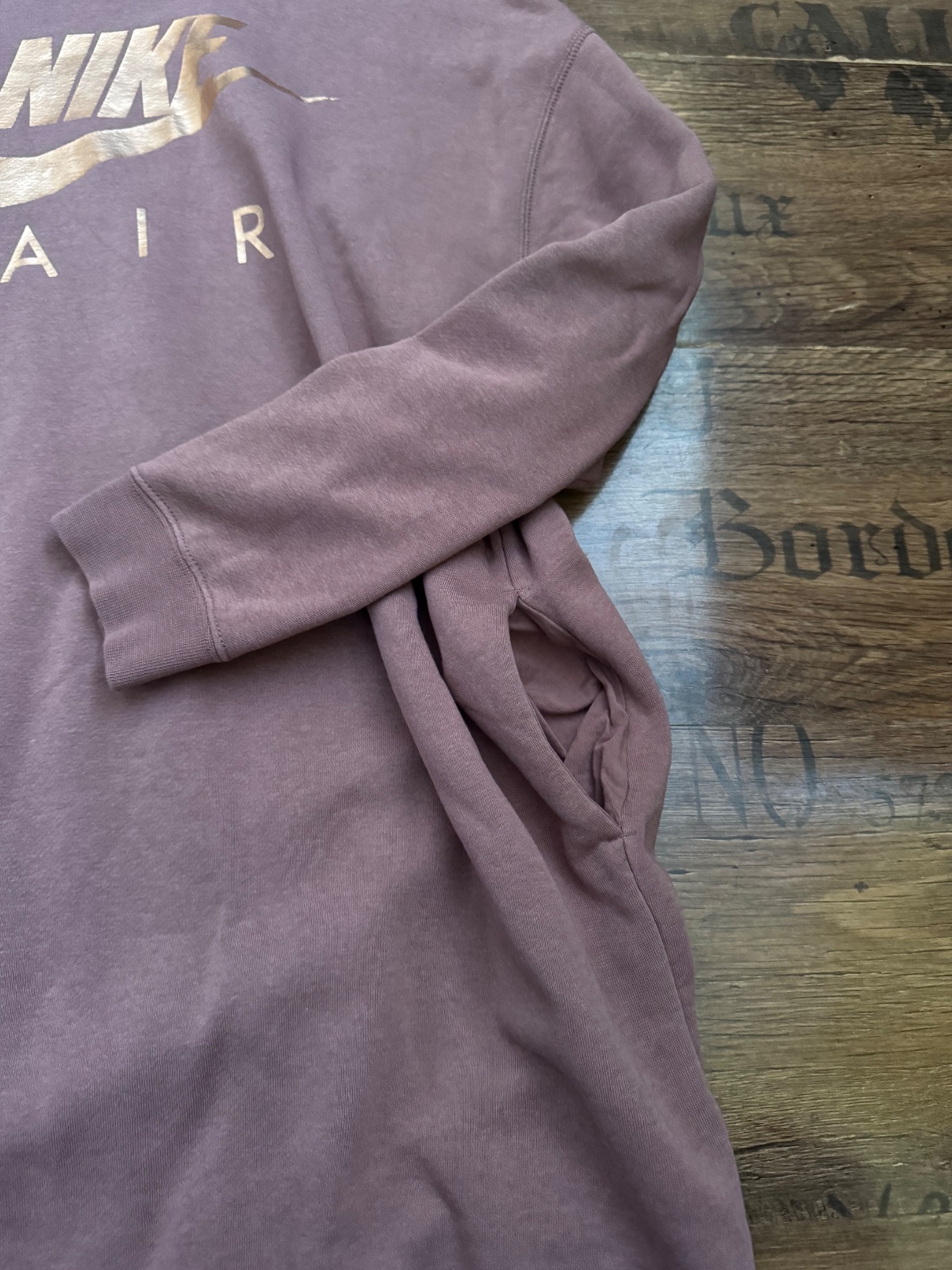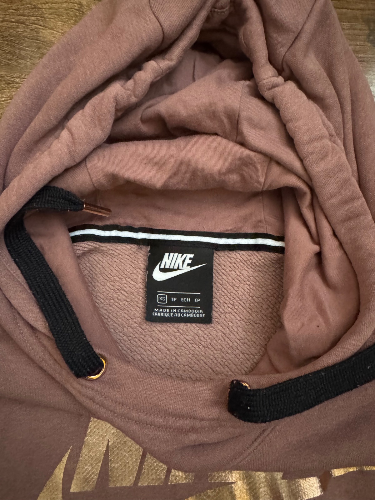 Ponúkam Nike Air OS Hoodie Dress, teda predĺženú mikinu s kapucňou resp. šaty. Má vrecká, je pohodlná vo veľkosti XS. Farba je taká zvláštna Taupe resp. taká staroružová so zlatým nápisom. Bola sem tam nosená, naďalej vo veľmi peknom stave. Poštovné podľa taríf.