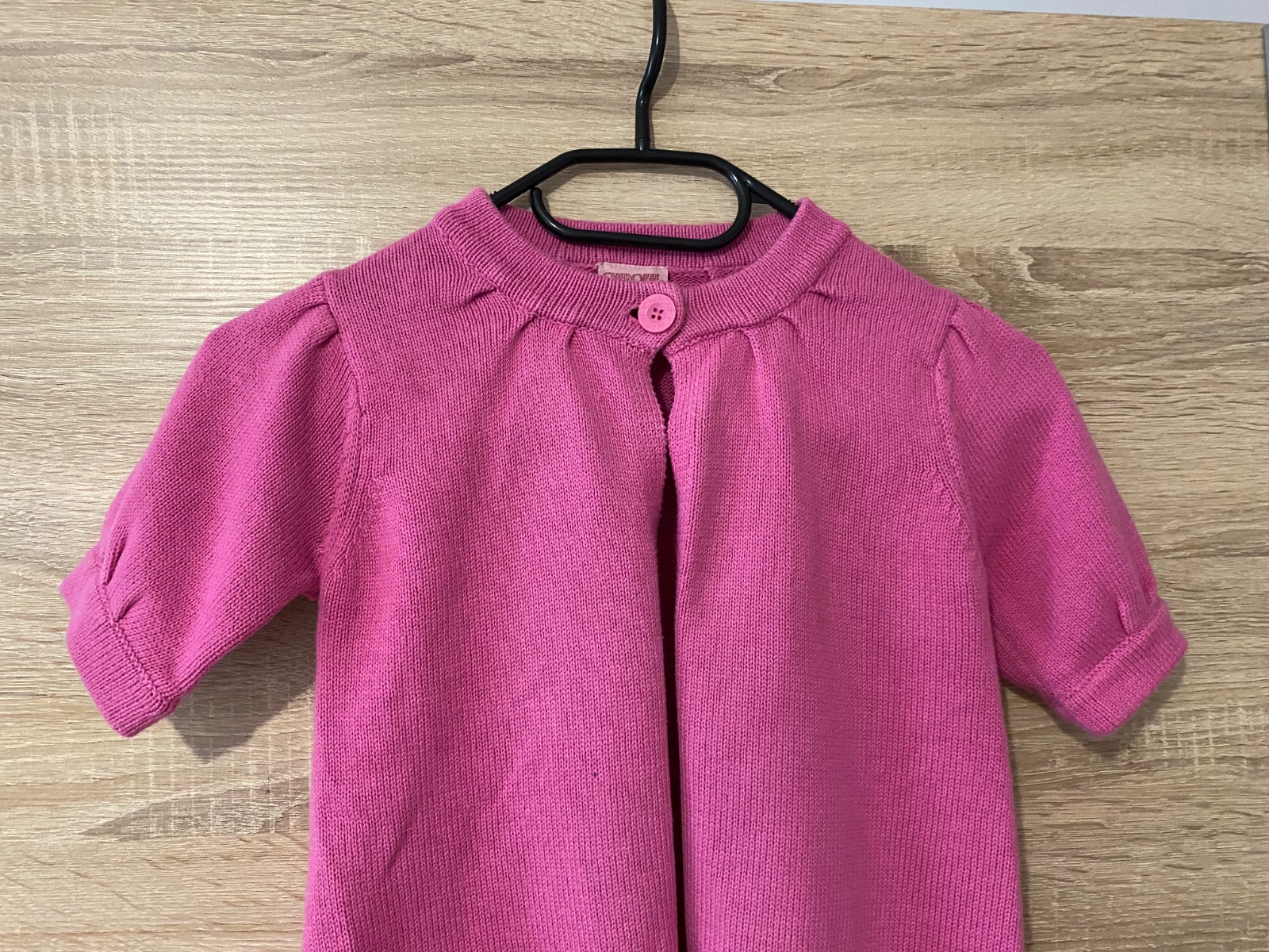 Svetrík s krátkym rukávom pre 4-5 dievčatá, plece+rukáv 29cm, obvod hrude 2x35cm, dĺžka 45cm