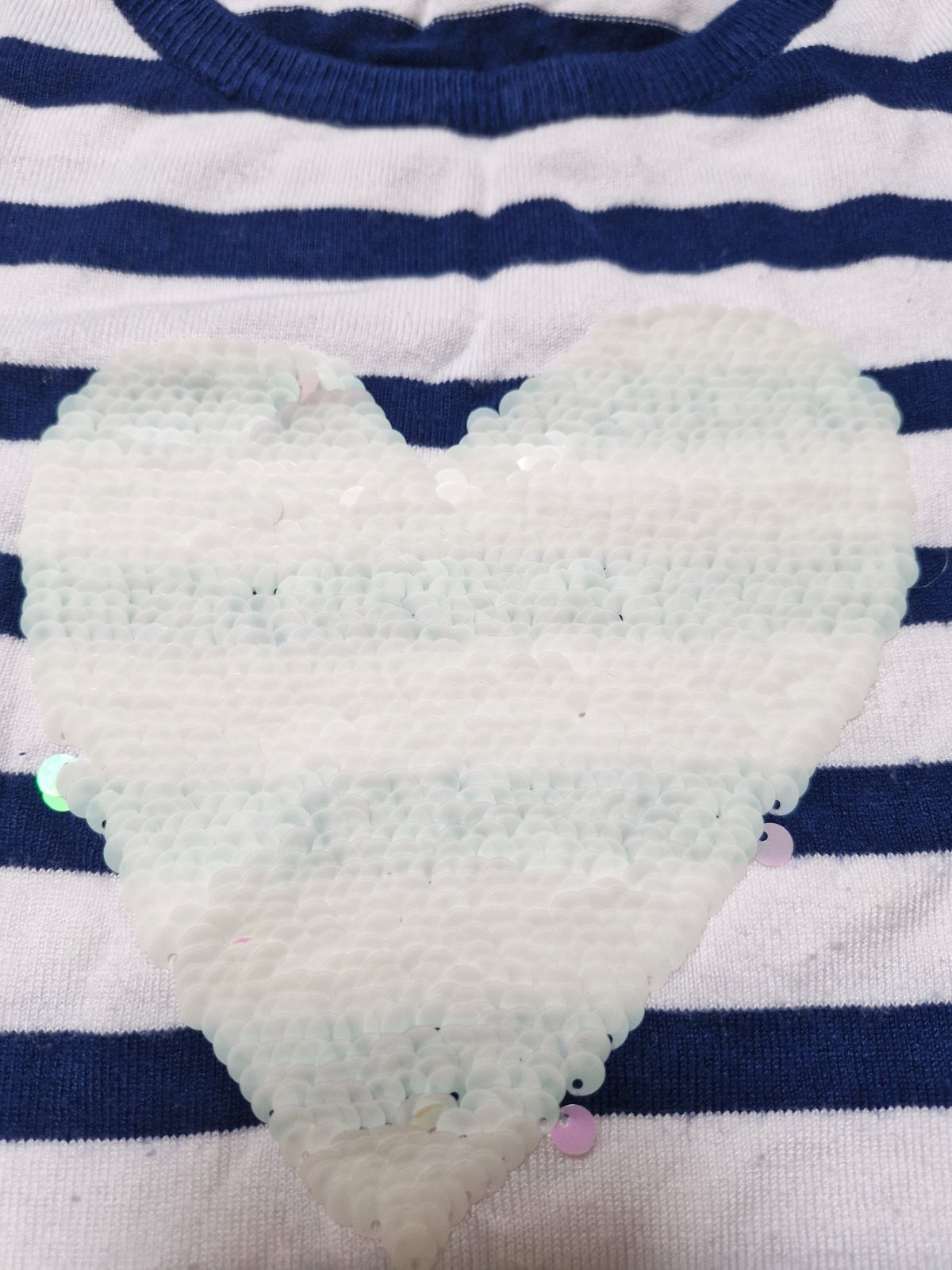Tenší pulovrik s flitrovym srdieckom, top stav. Cena je s poštovným.