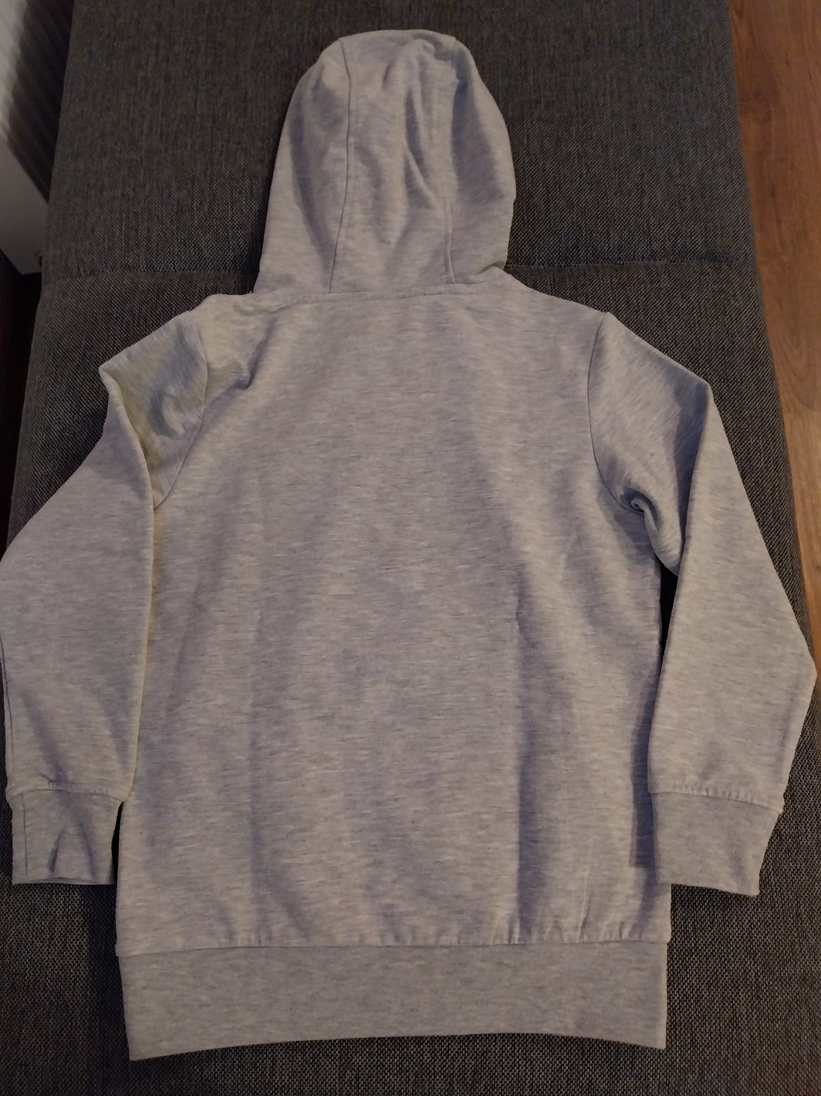 Teplá mikina, nosená. Celková dĺžka 50 cm, rukáv od pazuchy 37,5 cm, šírka pod pazuchami 39,5 cm