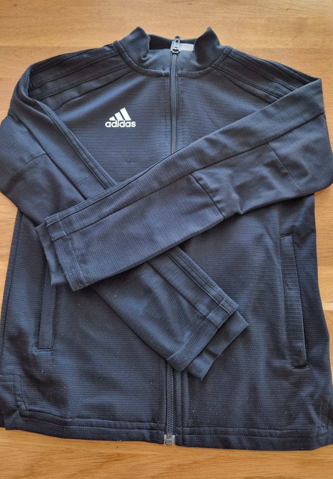 Nosená tréningová funkčná tenká mikinka, zn. Adidas. Dĺžka rukáva až ku krku je 57 cm. Šírka pod pazuchami je 40cm. Zadná dĺžka je 48 cm. Rukávy majú aj manžety, zips je funkčný aj 2 predné vrecká. Syn ju nosil veľmi rád na futbalové tréningy. Určite ešte vynosíte. Dobrý stav.