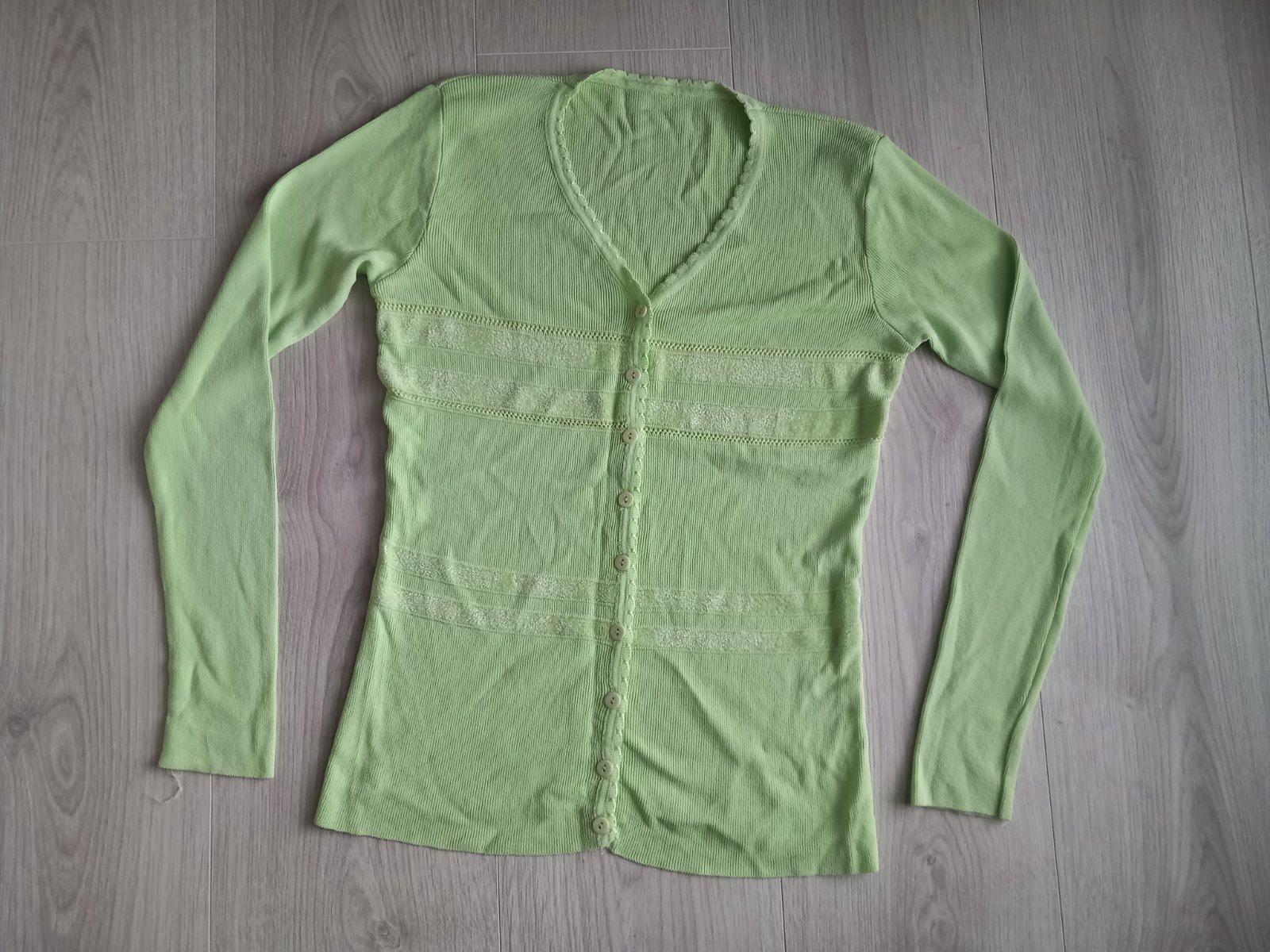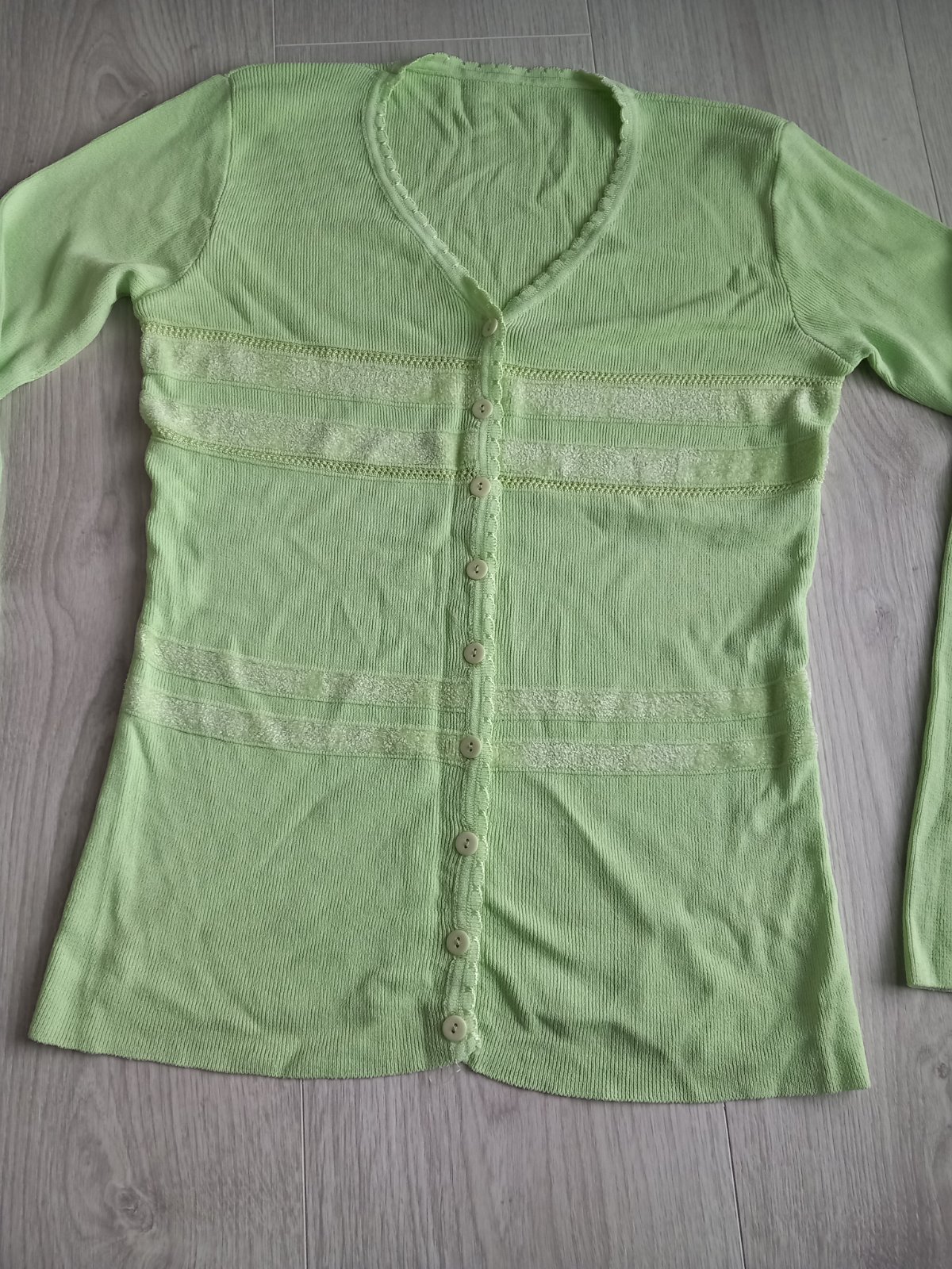 sýto svetlo-zelený sveter na gombíky vpredu, v top stave bez poškodenia.