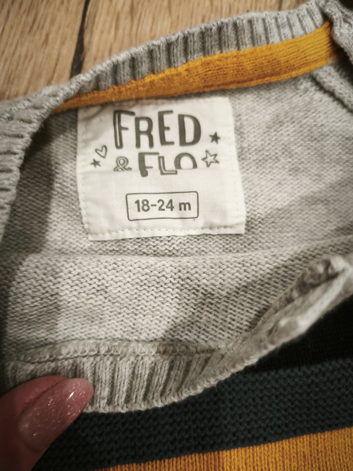 Predám krásny svetrík F&F vo veľkosti 92 nosený jedným dieťaťom bez akýchkoľvek poškodení vo výbornom stave. Dĺžka cez chrbát 36cm, šírka pod pazuchami 31cm, dĺžka rukávu od ramena 28cm.
