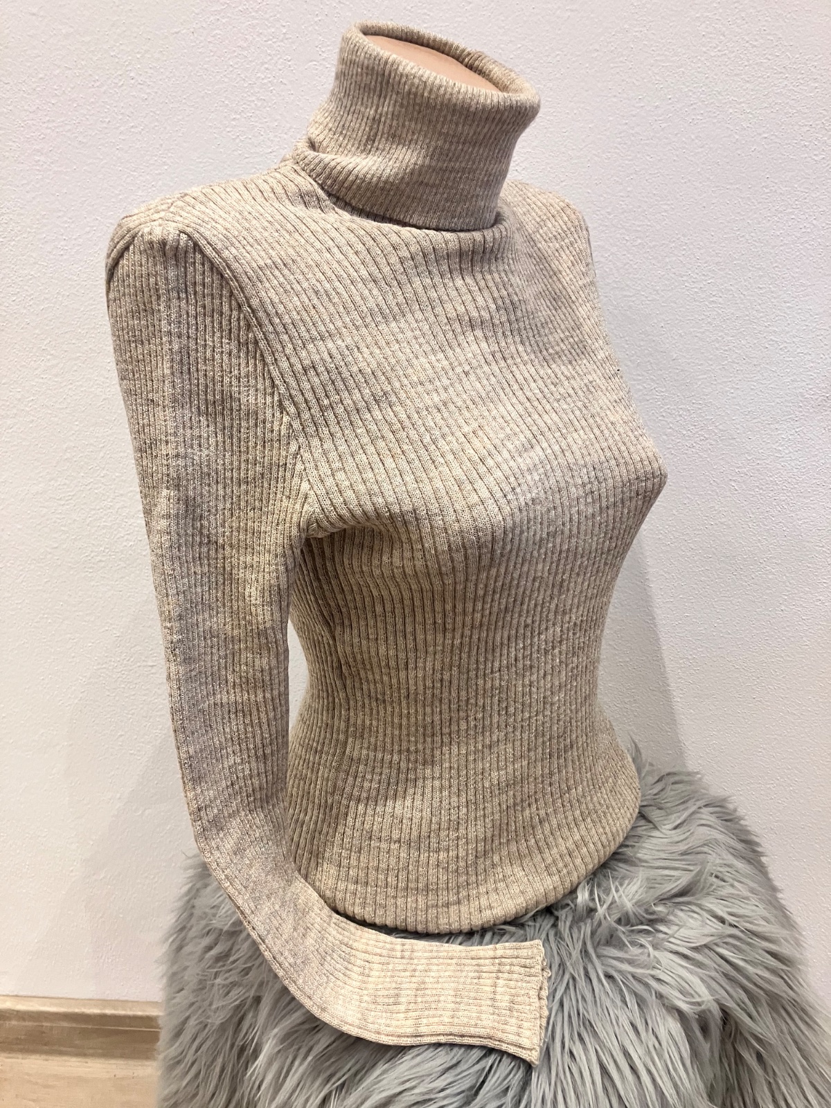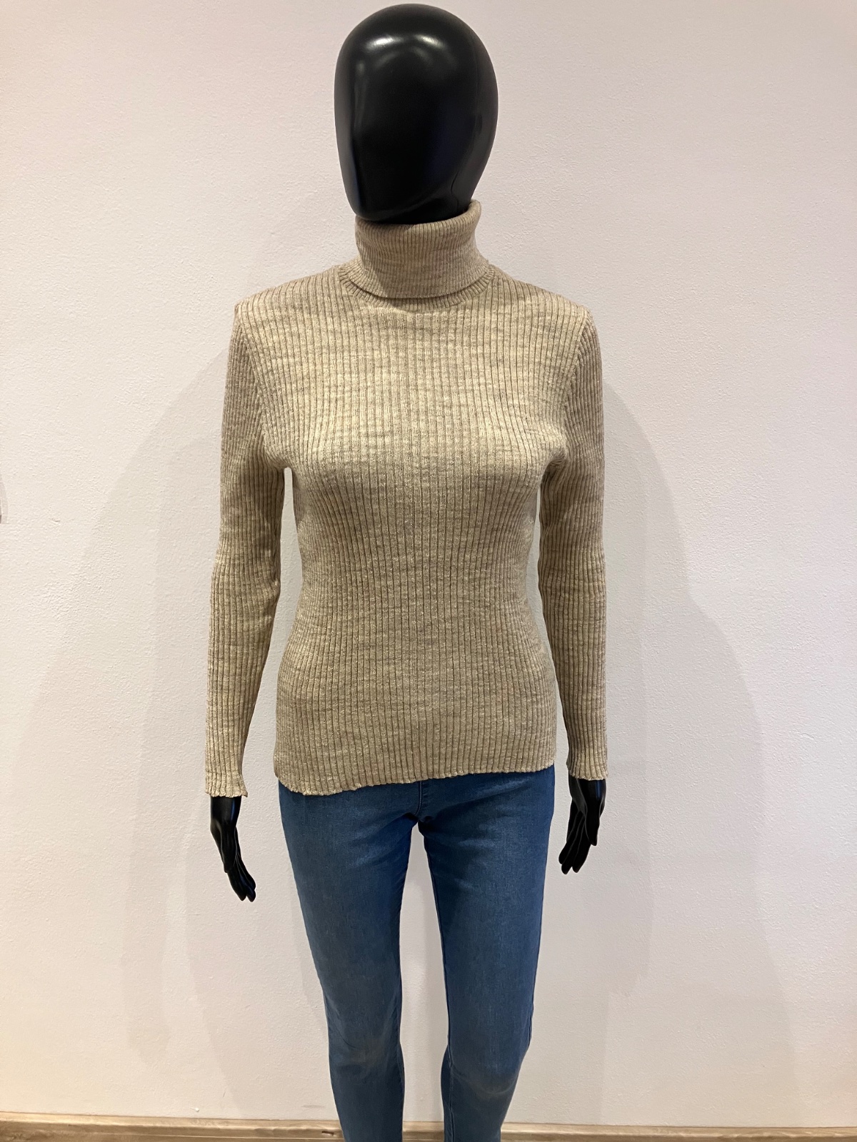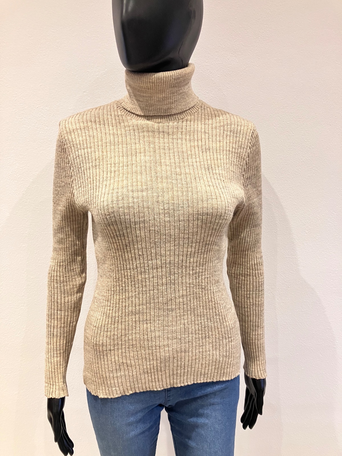 Dámsky sveter s rolákom, tenký, elastický, melírovaný. Veľkosť cca M.