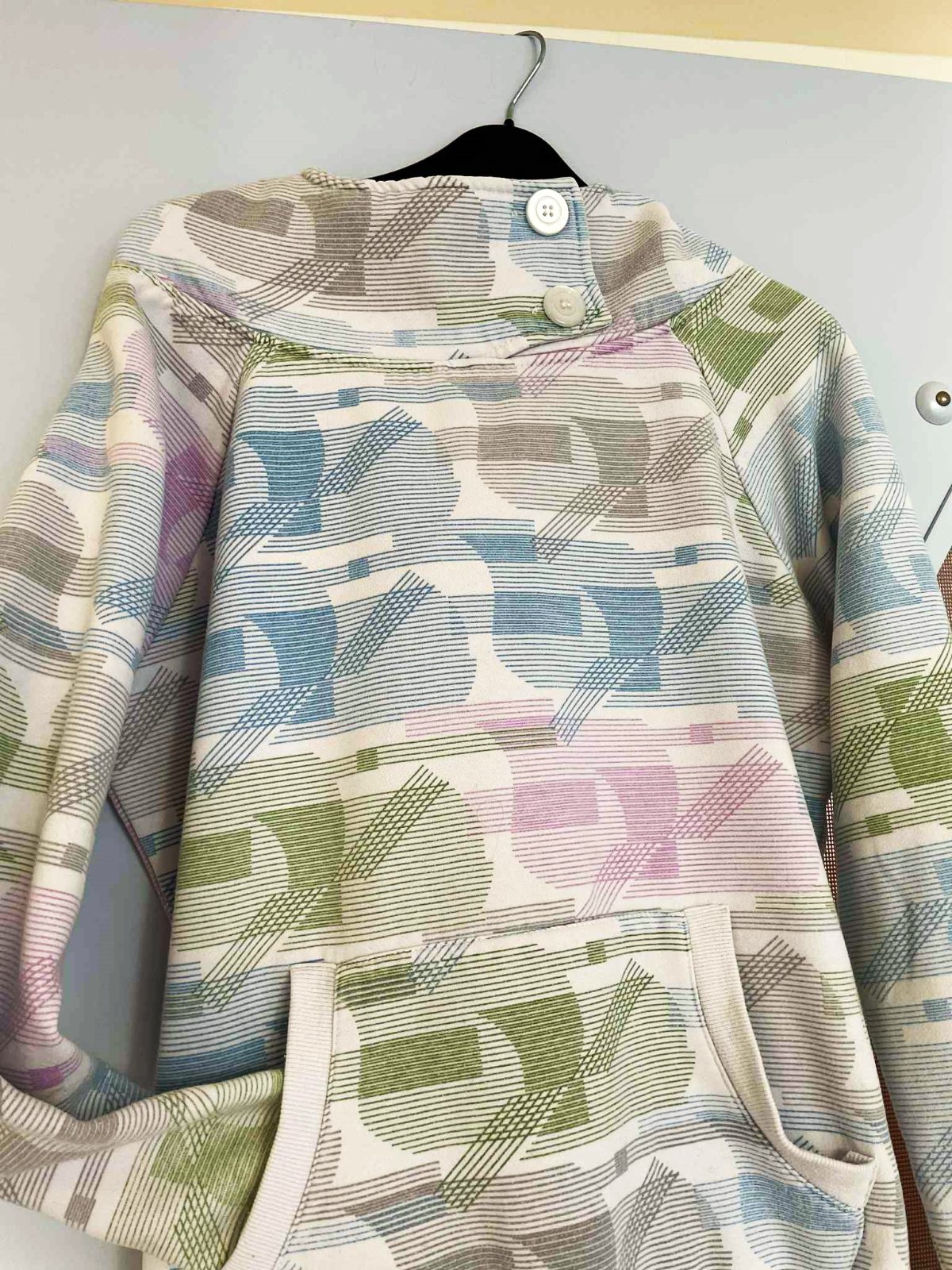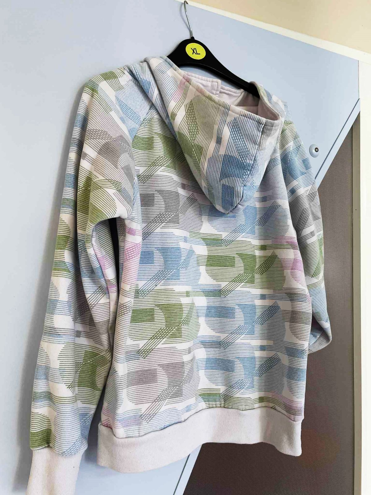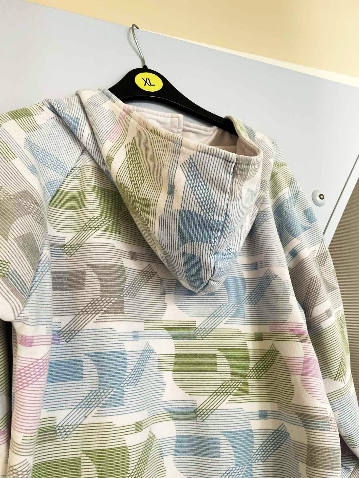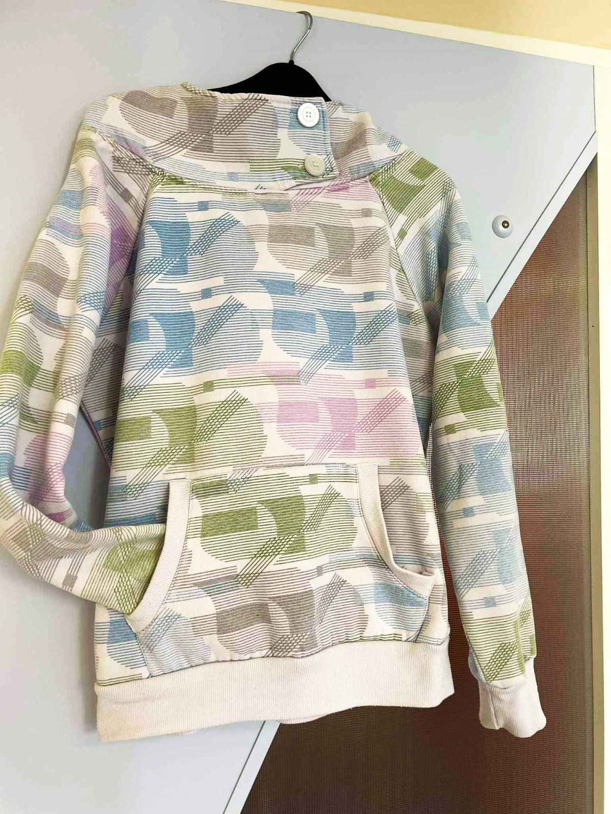 kvalitná zateplená značková mikinka v jemných farbách, s klokankou,veľmi zaujímavá kapucňa na 2 gombíky ,je veľmi teplučká,výborne sa udržiava.,miery : dlžka celkom = 64 cm,dlžka od pazuchy dole = 42 cm,šírka = 55 cm,rukáv meraný od kapucne na krku ( raglánový rukáv ) = 67 cm