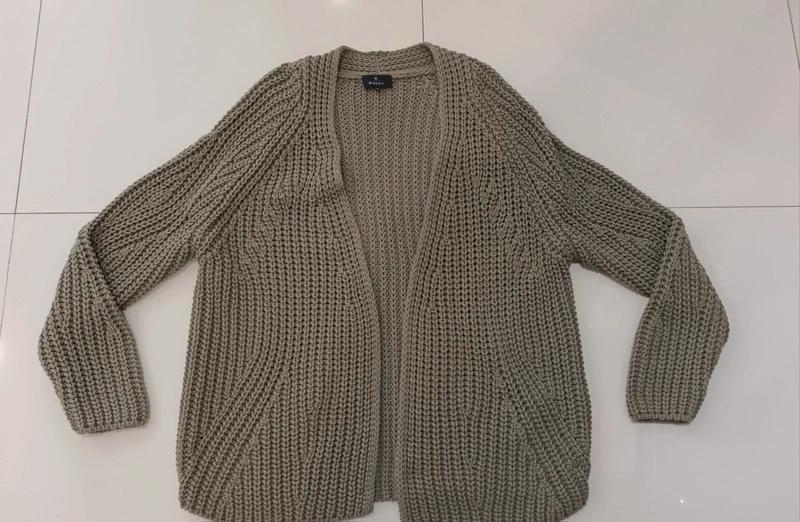 Khaki zelený kardigán nemeckej kvalitnej značky Monari, oblečený len 1x, dĺžka 70cm, podpazušie 53cm, rukáv od krku 72cm, pružný materiál, PC 119e