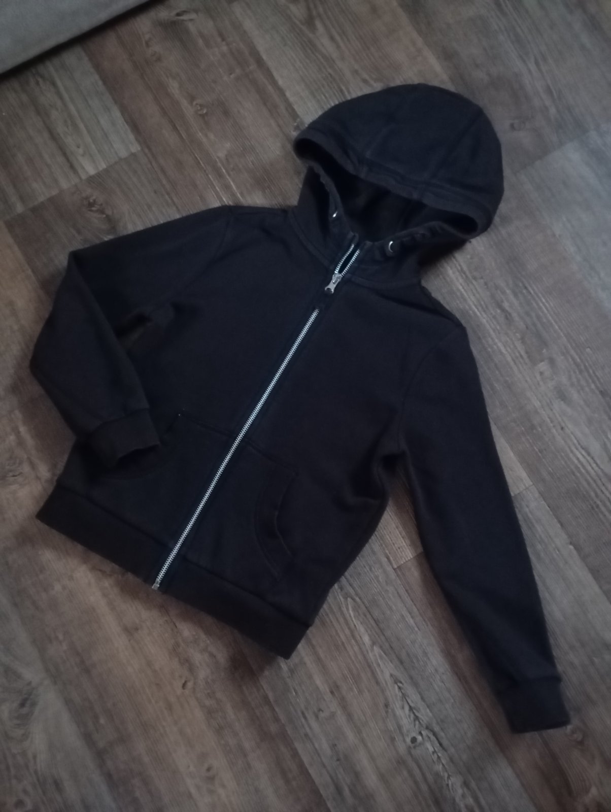 Mikina bez fľakov a dier, vidno pranie trochu, ale na doma, či ihrisko úplne v pohode. Zipsy funkčné po bokoch a zospodu rukávov lesklá látka akoby vetrovka. Vrecká zpredu 2,na ľavom rukáve ozdobné...