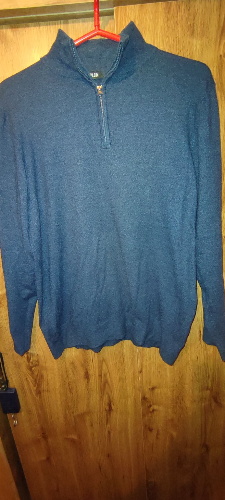 Minimalne noseny tmavomodry pulover, ktory zavadzia v skrini