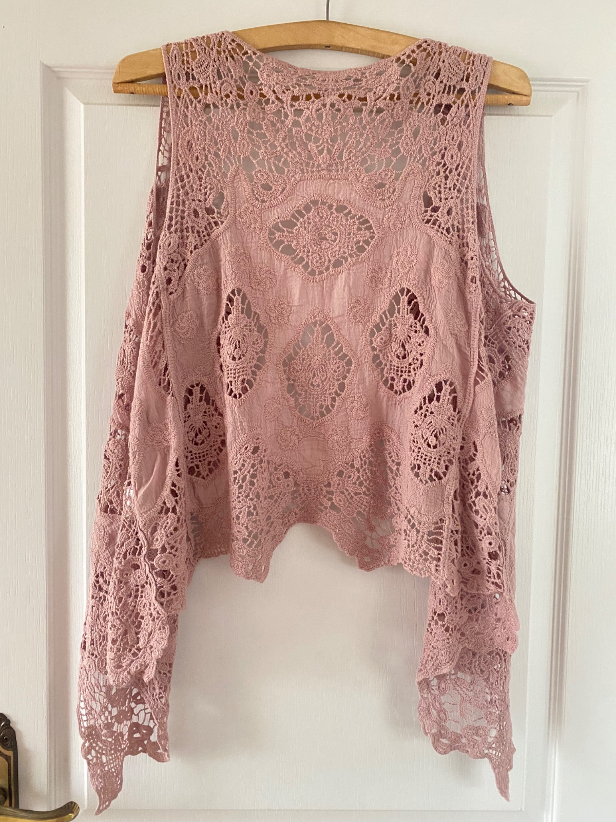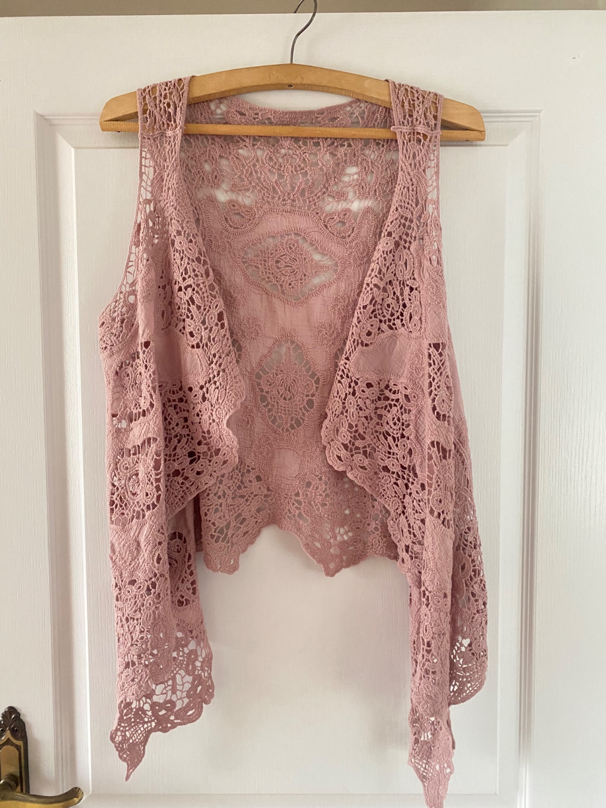 Ružová háčkovaná vesta