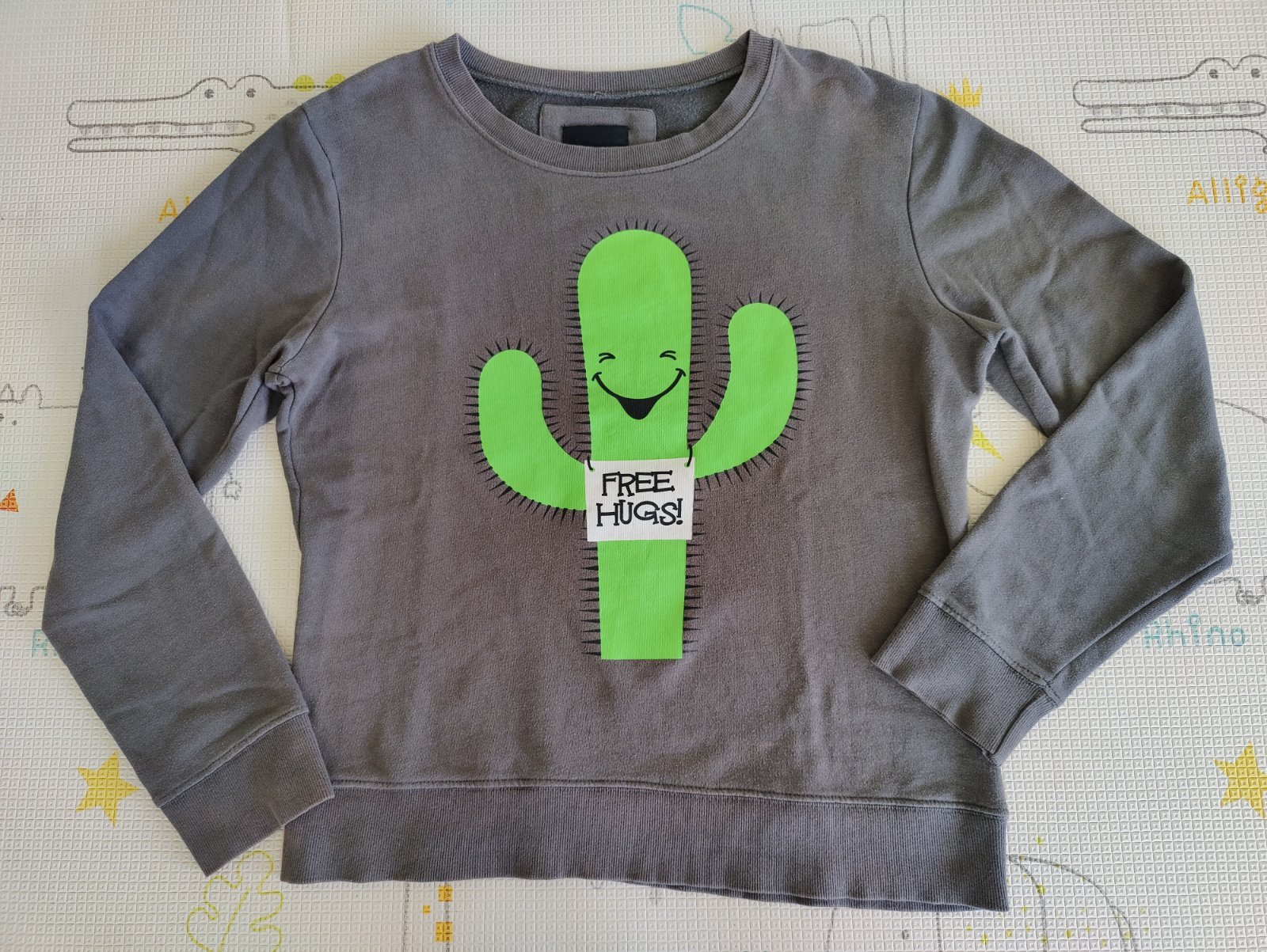 Predám dámsku mikinu sivej farby s motívom kaktusu a nápisom FREE HUGS. Veľkosť je uvedená XL, ale sadne pekne aj ako oversize na S/M. Pekný nosený stav.