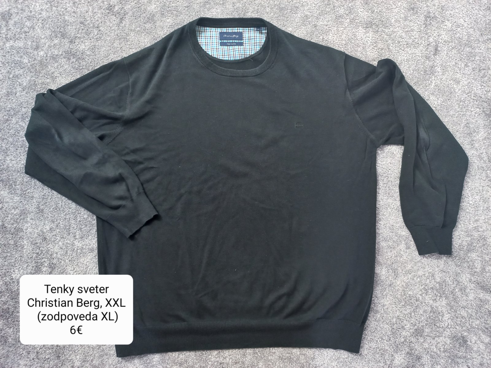 Noseny tensi bavlneny sveter, bez vacsich poskodeni (farba nie je taka syta, na laktoch trosku vytahany), znacka Christian Berg. Na visacke XXL, zodpoveda XL.
