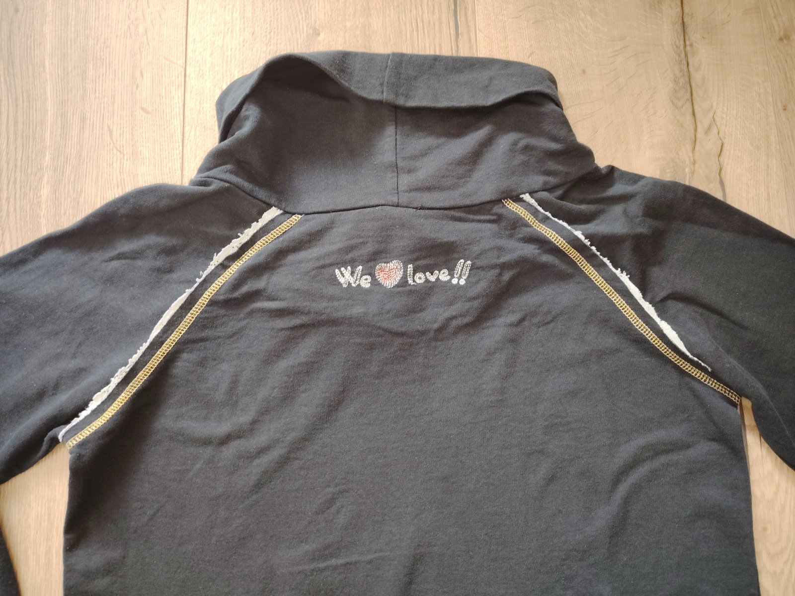 Pulóver, mikina v nosenom, veľmi dobrom stave. Materiál bavlna, ale pevná, už nepovolí. Šírka pod pazuchami 51cm, dĺžka 70cm, dĺžka od krku 68cm, rukáv spodná dĺžka 51cm.