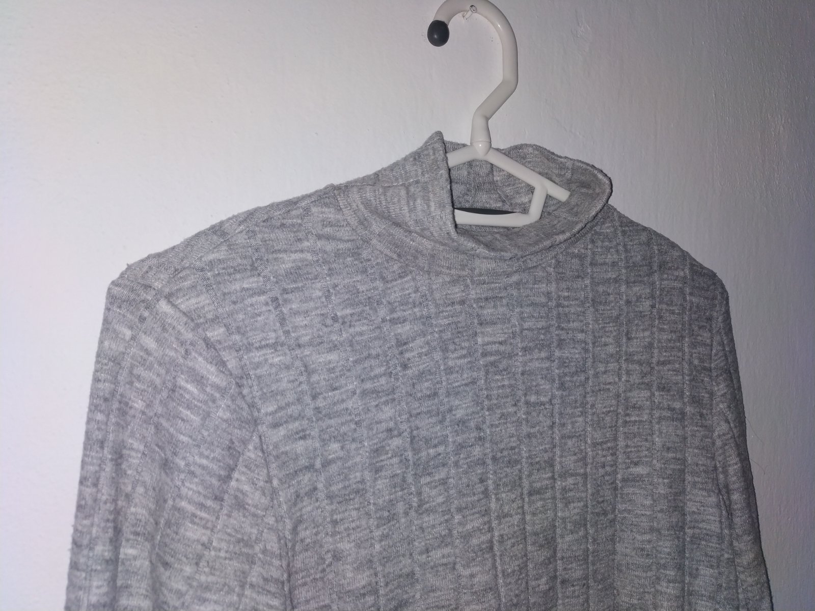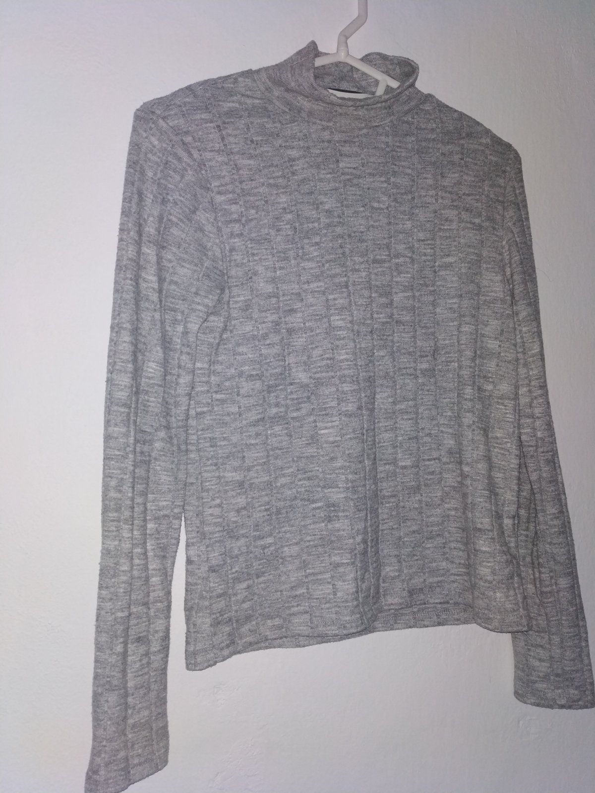 Rolák s mäkkej, rebrovanej pleteniny - spodná časť svetlosivá jemne melírovaná, vrchná časť je tmavosivá. Materiál je veľmi poddajný. Nosený málo, vo veľmi dobrom stave. Veľkostne sadne na XS - S. ...