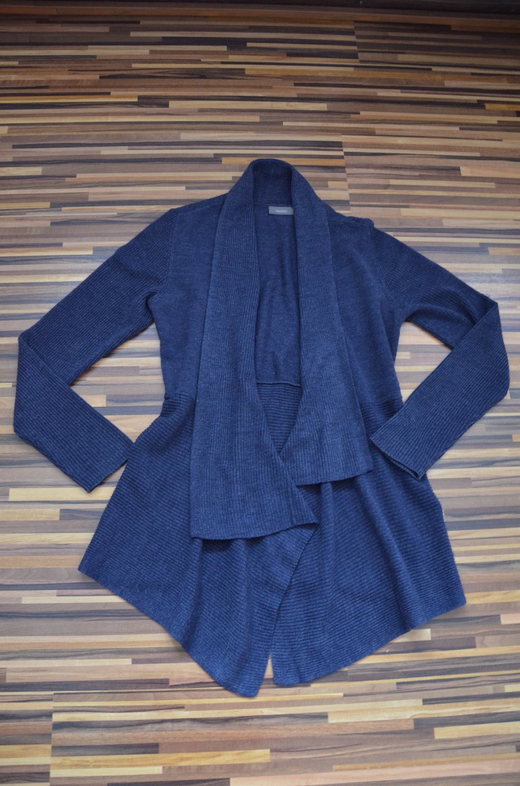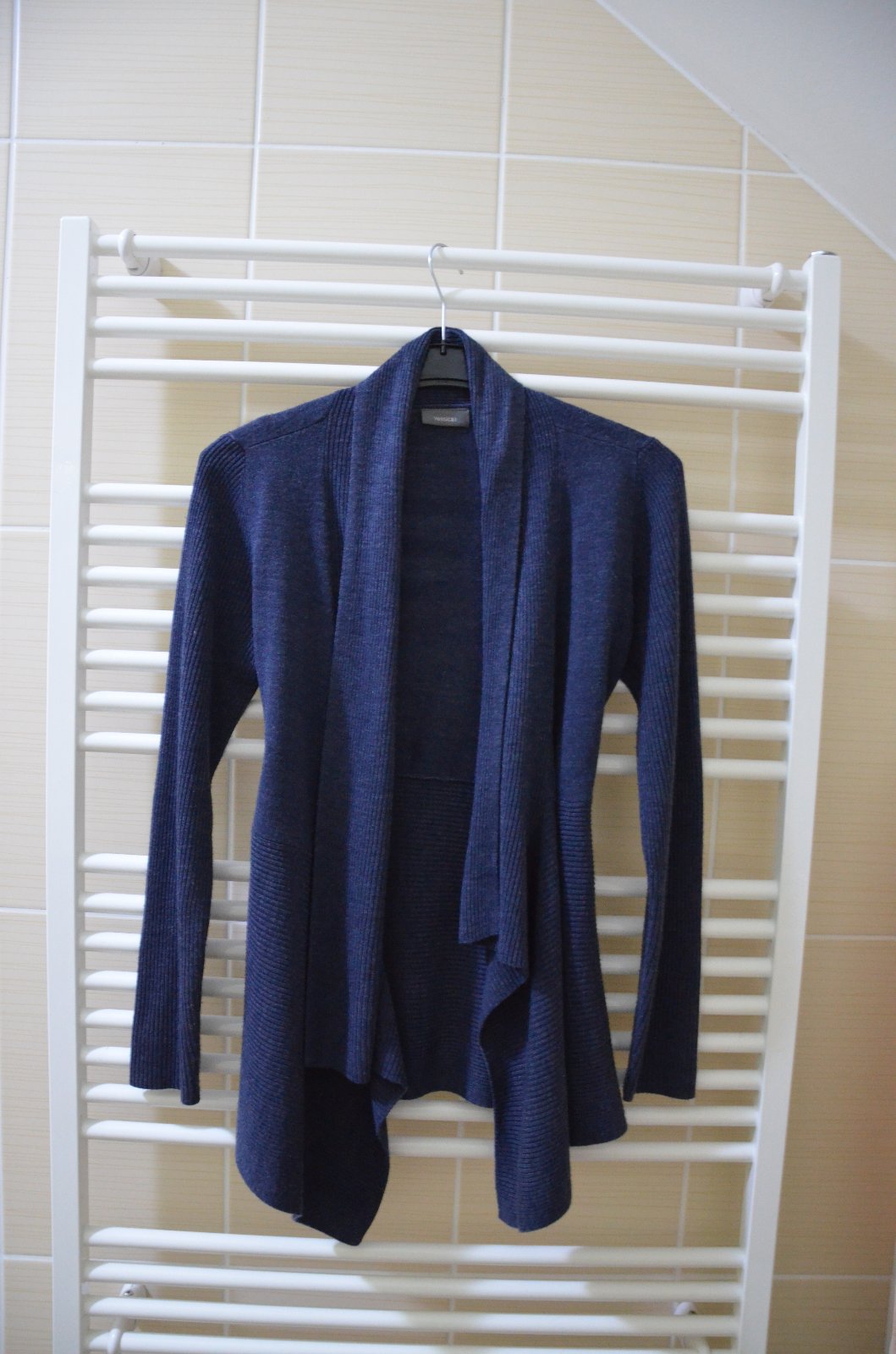 Pleteny kardigan, padavy strih, bez poskodeni. Zadny diel kratsi ako predny.